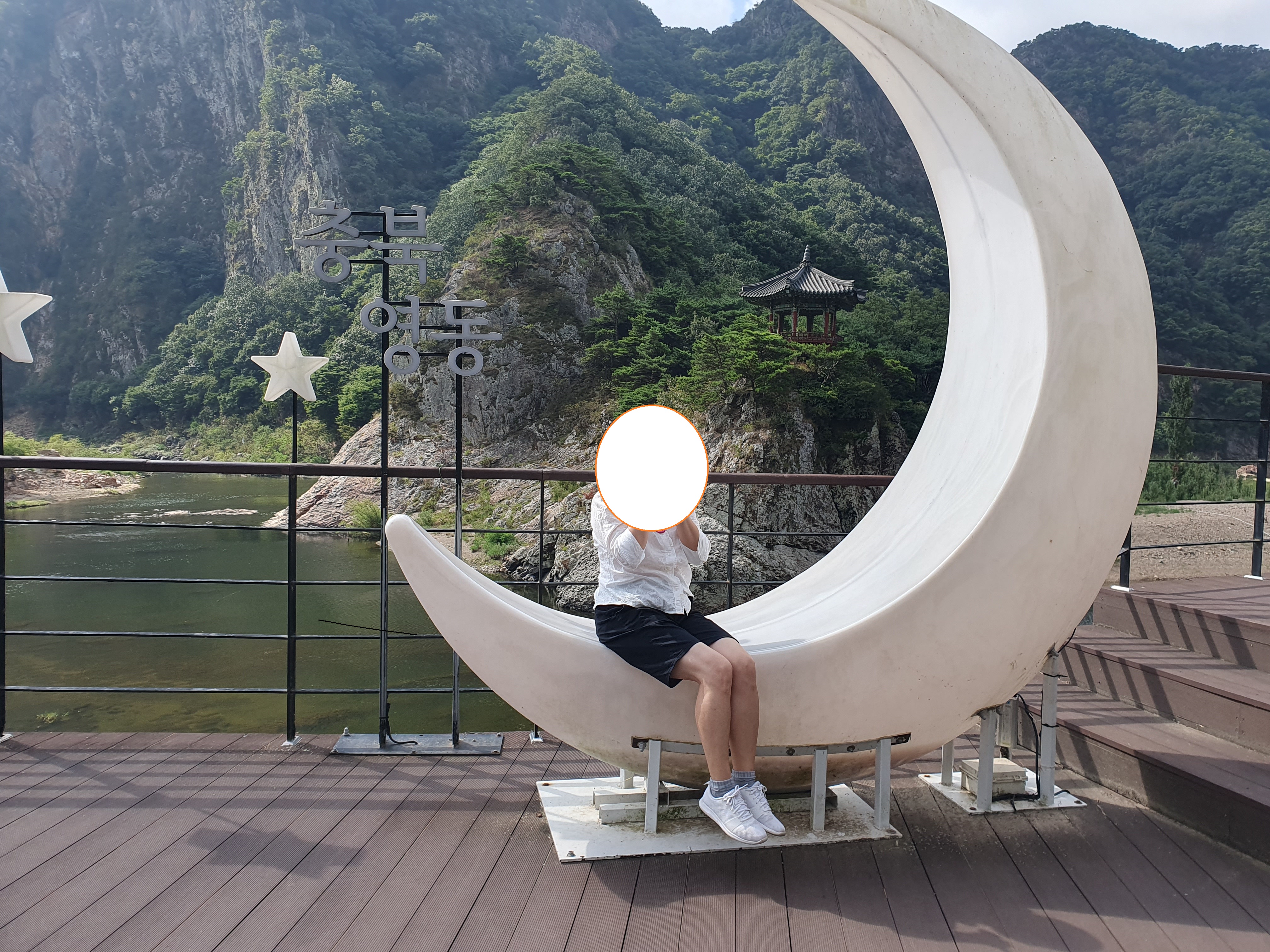 첫 번째 월류봉에 갔다. '달이 머물다 가는 봉우리' 라는 뜻의 월류봉은 달밤의 절경이 아름답지만 낮에도 경치가 좋고 물소리가 시원하였다. 경치를 보며 둘레길을 천천히 걷고 다시 차에 올랐다.