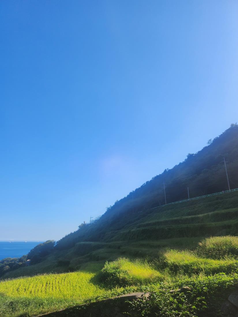 마지막 다랭이마을 ..가파른 내리막길 끝에는 바다를 바로 앞에서 볼 수 있게 해안가가 있습니다 해안가를 바라보면 작은 바위섬들이 보입니다 자연이 만들어 놓은 선물들이니 하나하나 눈에 담았습니다 그리고 돌아갈 길에 시선을 멈추니 가파른 오르막길을 올라가야 했는데 손님들과 도란도란 이야기하니 금방 버스에 도착했습니다