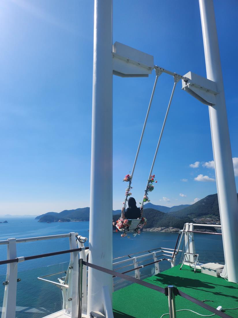 설리스카이워크이 전망대에서는 360도 바다를 내려다 볼 수 있는 남해 최고의 전망대입니다 유리 바닥 아래는 고소공포증을 유발하는 느낌같이 짜릿하고 스윙그네 너머에는 경치가 한 몫해서 손님들 웃는 모습이 인상깊습니다 맑게 웃는 모습에 가이드로서의 뿌듯함을 느낄 수 있는 시간이었습니다