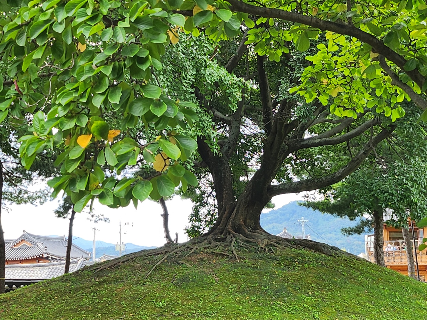 요가 동작 중에서는 브릭샤 아사나라는 동작이 있습니다. 고봉밥처럼 세워진 언덕 위로 나무가 우뚝 솟아져 있어 그런 동작이 더욱 생각나게 했습니다. 문화재를 배경으론 아름다운 자연이 있어야 하다고 어머니가 말씀하셨는데 경주는 그런 곳이라 더욱 마음에 든다 하셨습니다.