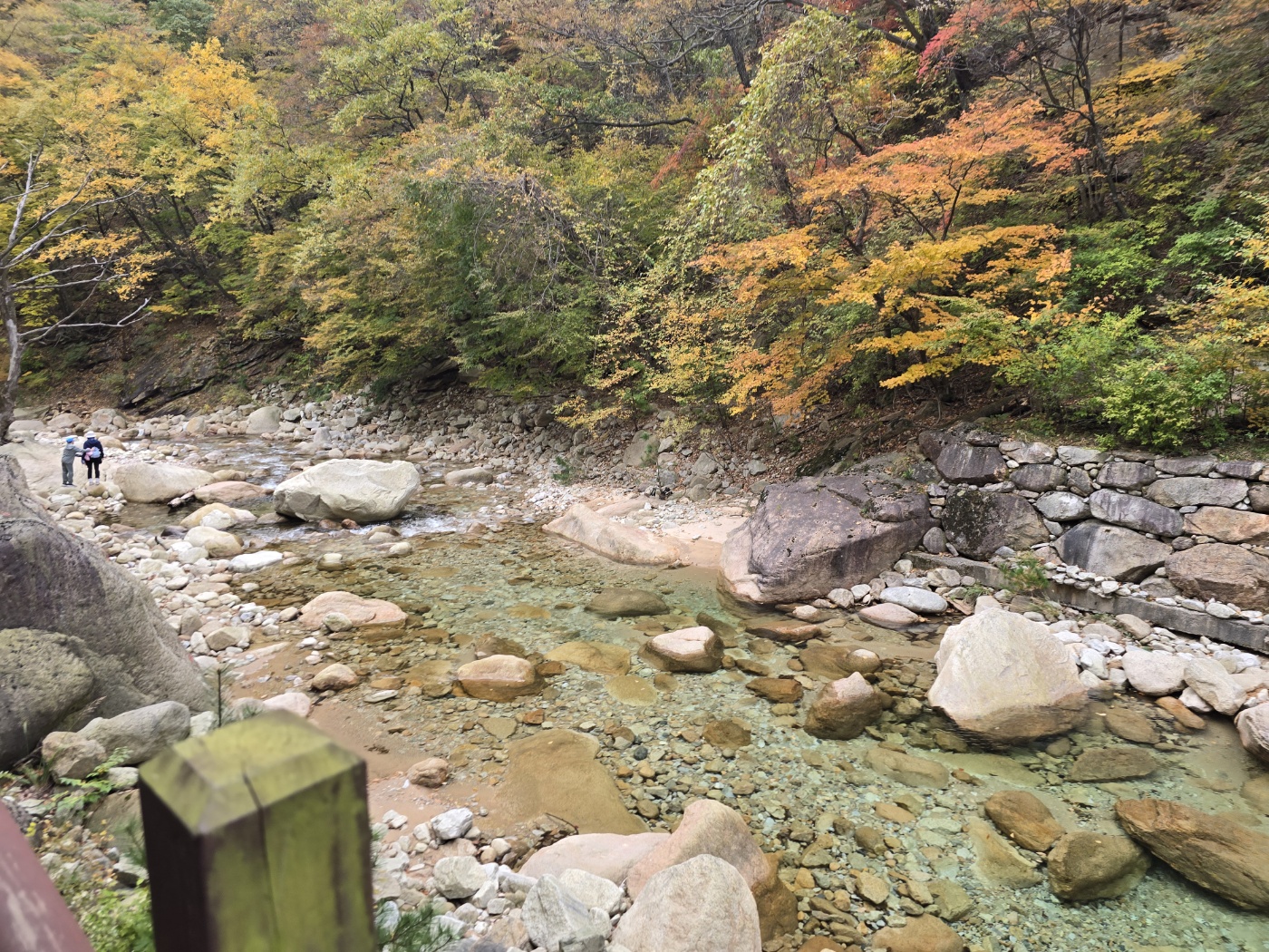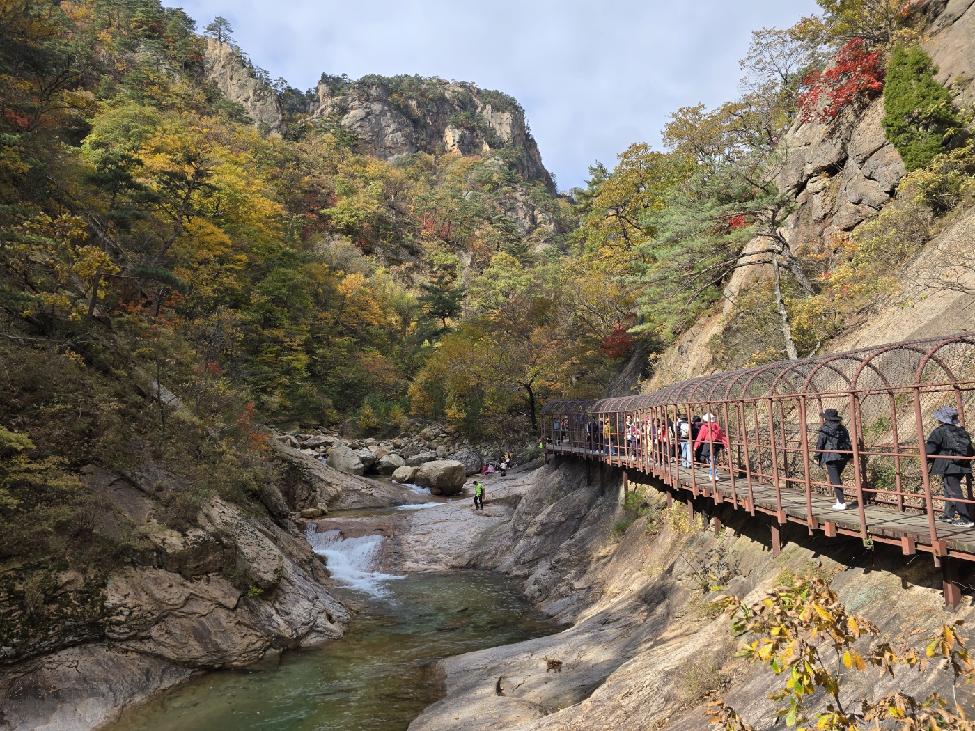 안녕하세요. 10월의 가을날 단풍명소, 남설악 주전골계곡과 주문진시장을 다녀왔습니다. 남설악 주전골에 단풍이 이쁘게 들어서 가는 걸음마다 풍경이 너무 이뻐서 사진을 많이 찍고 왔어요! 시원한 바람, 높고 푸른 하늘과 울긋불긋한 단풍과 설악산의 멋진 기암괴석을 보여 우아아~ 감탄을 했답니다ㅎㅎ 물이 진짜 맑았어요! 그리고 콧바람 쐬고 너무 좋았어요! 다음은 주문진시장에 갔습니다. 사람이 엄청 많더라구요. 매운탕, 곰치국, 물회, 오징어회, 모듬회, 건어물 등등 대구에서 먹기 힘든 싸고 좋은 싱싱한 수산물이 많았습니다:) 먼 거리의 여행이였지만, 그만큼 값진 풍경을 보고 와서 기분이 좋은 하루를 보내고 왔답니다!