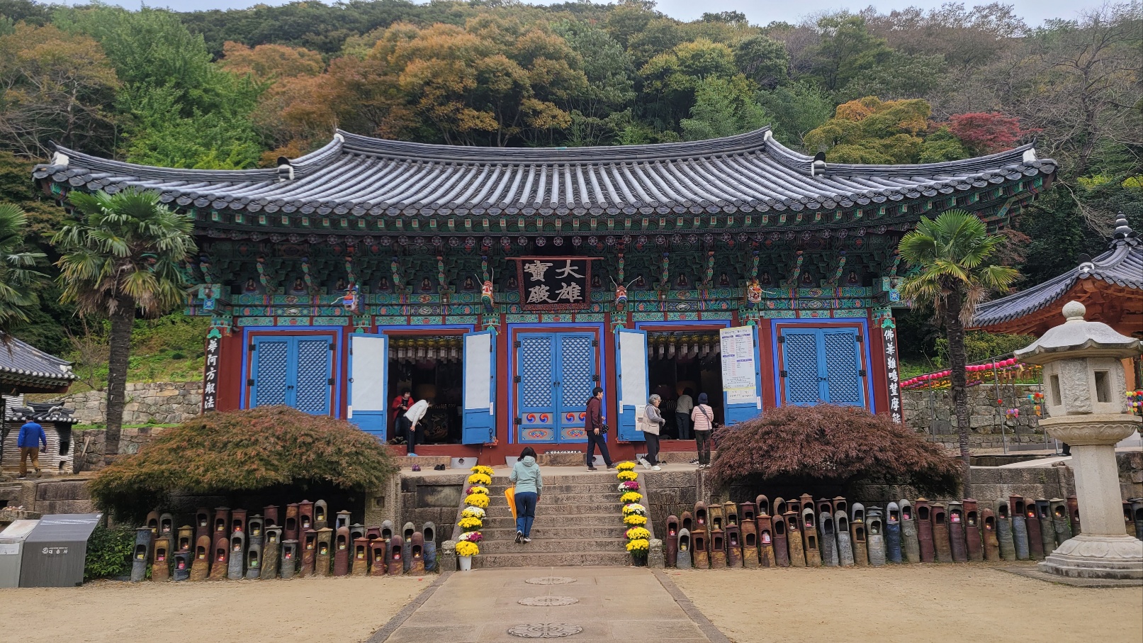 대웅전에서 가족의 건강과 행복을 빌며 정성도 드립니다