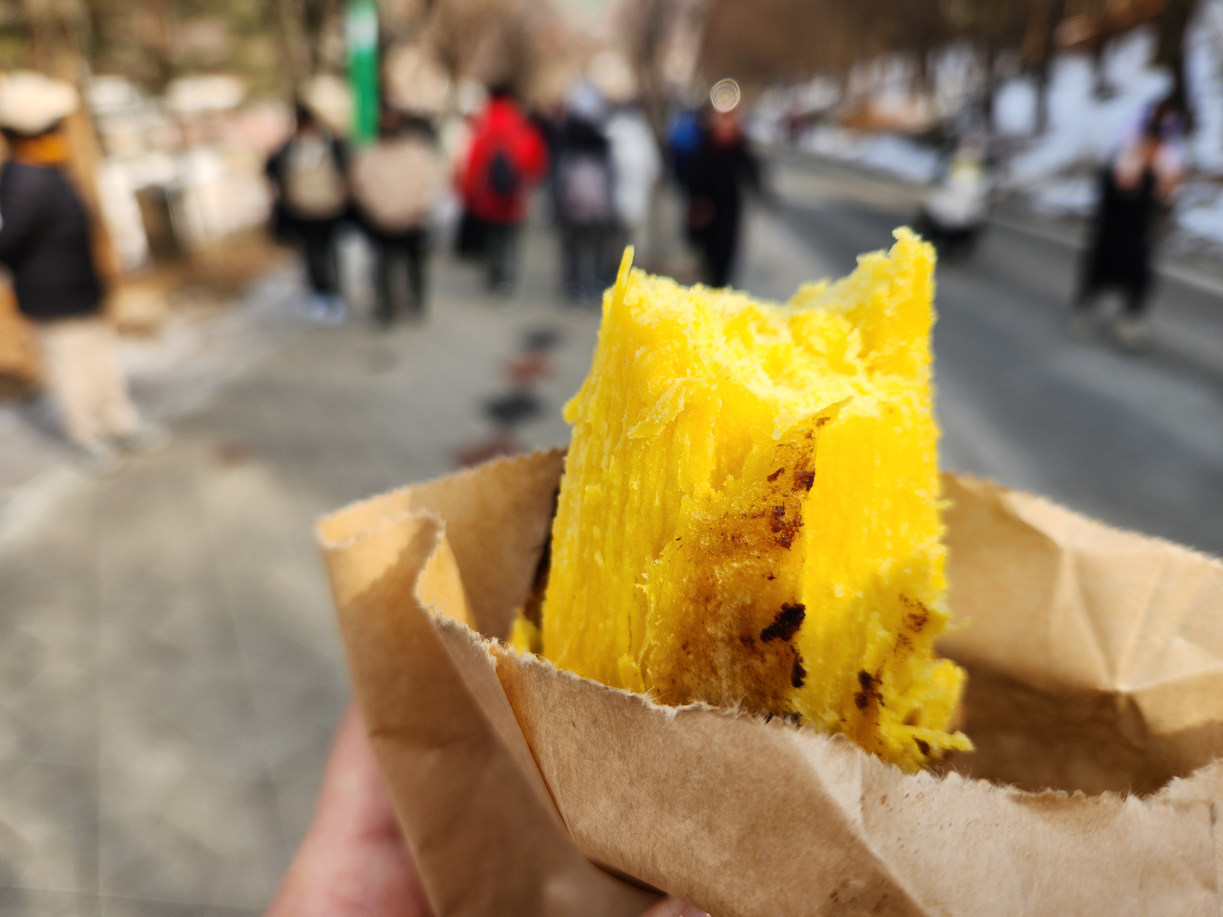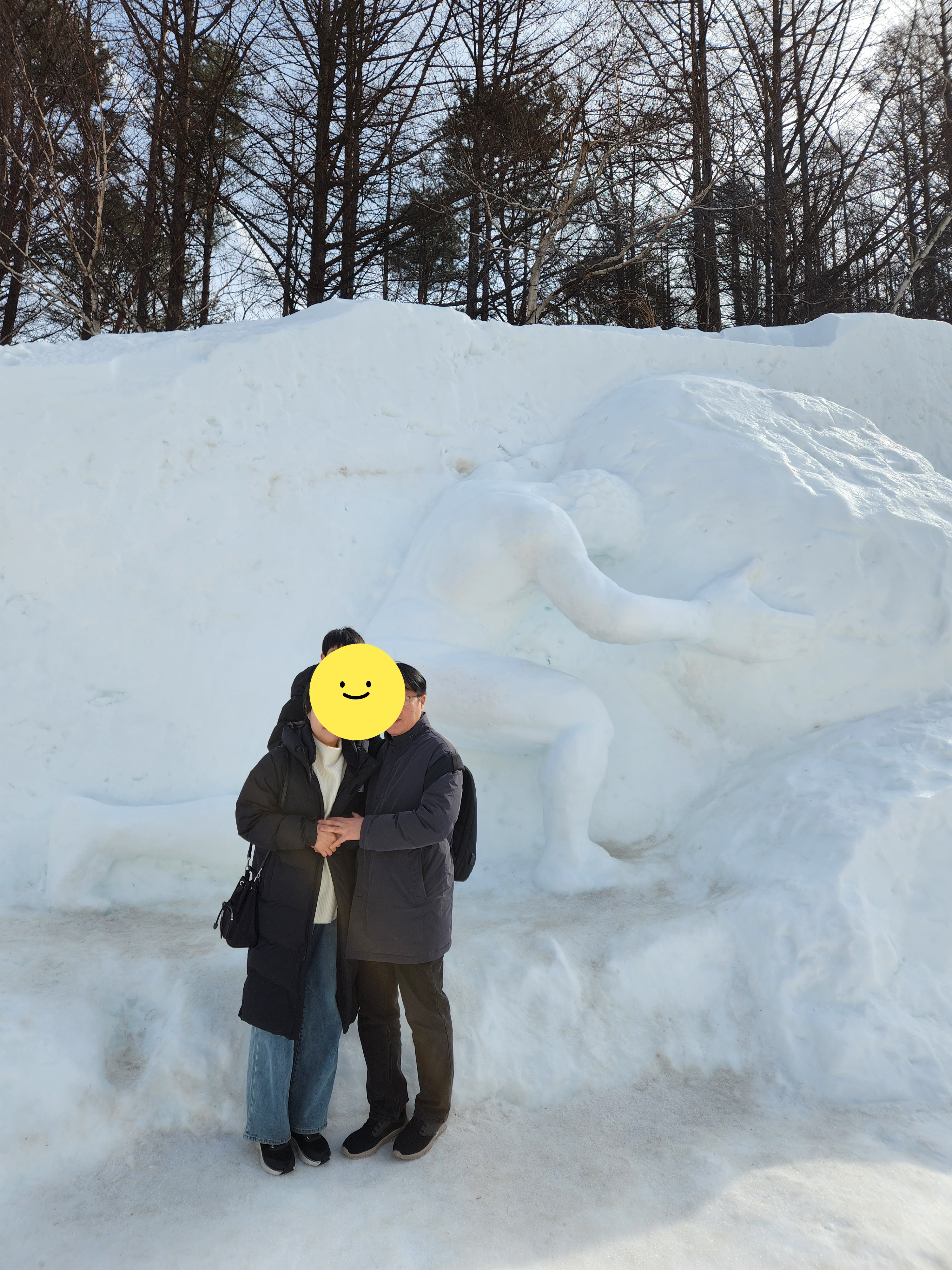 운좋게 태백축제 마지막날 이른 시간에 도착해서 붐비기 직전에 여러 행사에 참여할 수 있었다. 비치해둔 조각상들과 사진도 찍고 아이는 무드등 만들기 체험과 눈썰매타기 등을 경험했고 나는 태백시내에서 사용한 영수증과 간단한 설문후 무료제공하는 군고구마를 받아 호호불며 맛있게 먹었다.