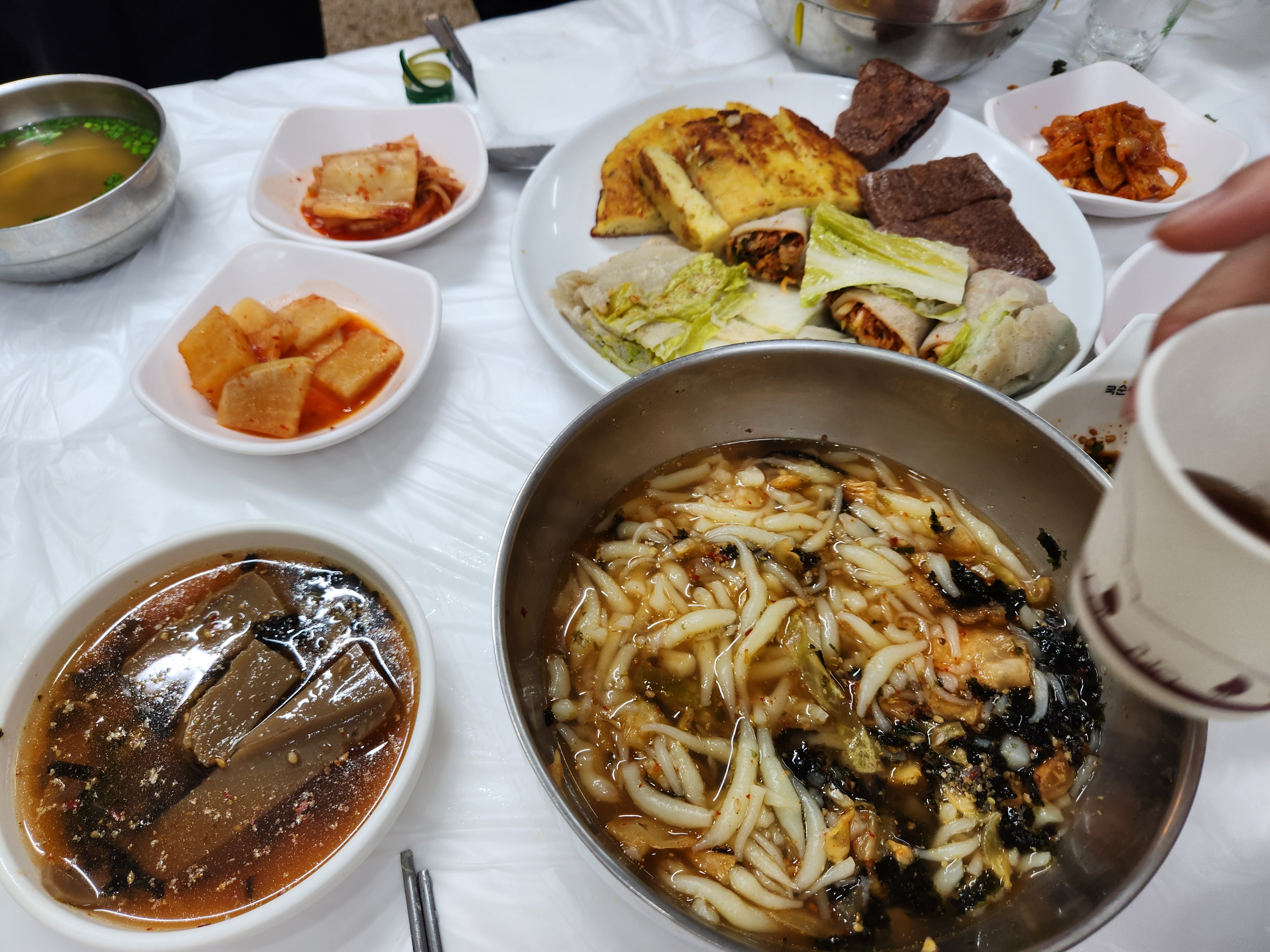 점심시간에는 정선시장에 들러 강원도 시장의 모습을 구경했다. 곤드레 같은 건나물과 껍질째 먹을수 있는 도라지, 고기 같은 질감이 나는 표고버섯이 듬뿍 쌓여있어 신기했다. 너무 맛있어서 국수를 후루룩 먹었을 때 콧등을 쳐도 모른다는 콧등치기 국수와 올챙이 모양의 올챙이 국수, 모듬전을 시켜 푸짐하게 먹었다. 강원도음식에는 메밀이 많이 들어간다.