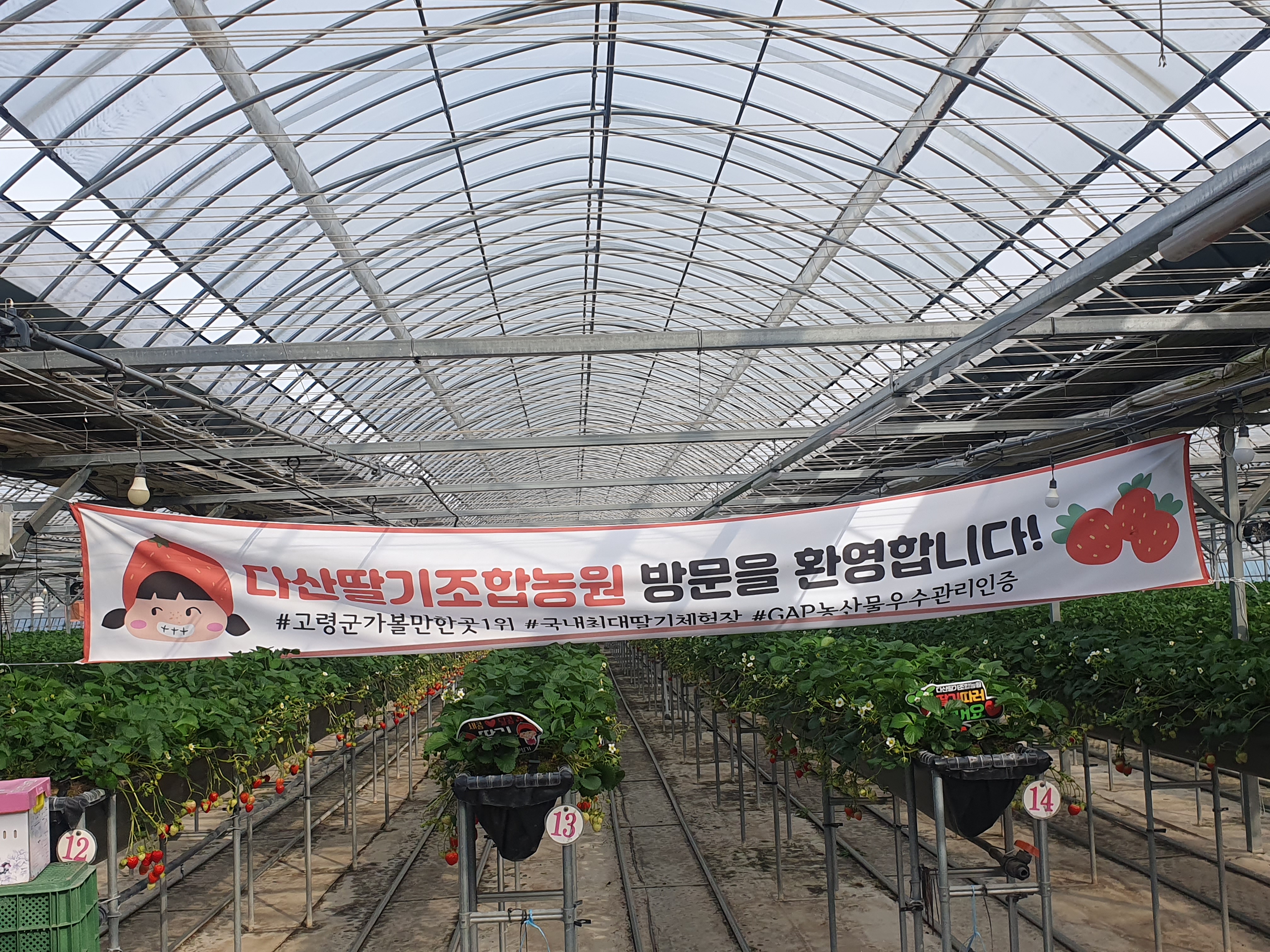 마지막 하일라이트 딸기따기체험장으로 갔다. 30분 동안 실컨 먹고 500그램 한 통씩 따서 가지고 가는 체험이다. 많은 사람들이 체험하러 왔다. 어묵꼬치와 아이스크림도 제공해 주셔서 맛있게 잘 먹었다. 고령투어에 오길 잘했다는 생각이 들었다. 다만 대가야축제를 보지 못한 것은 다소 아쉬웠다.
