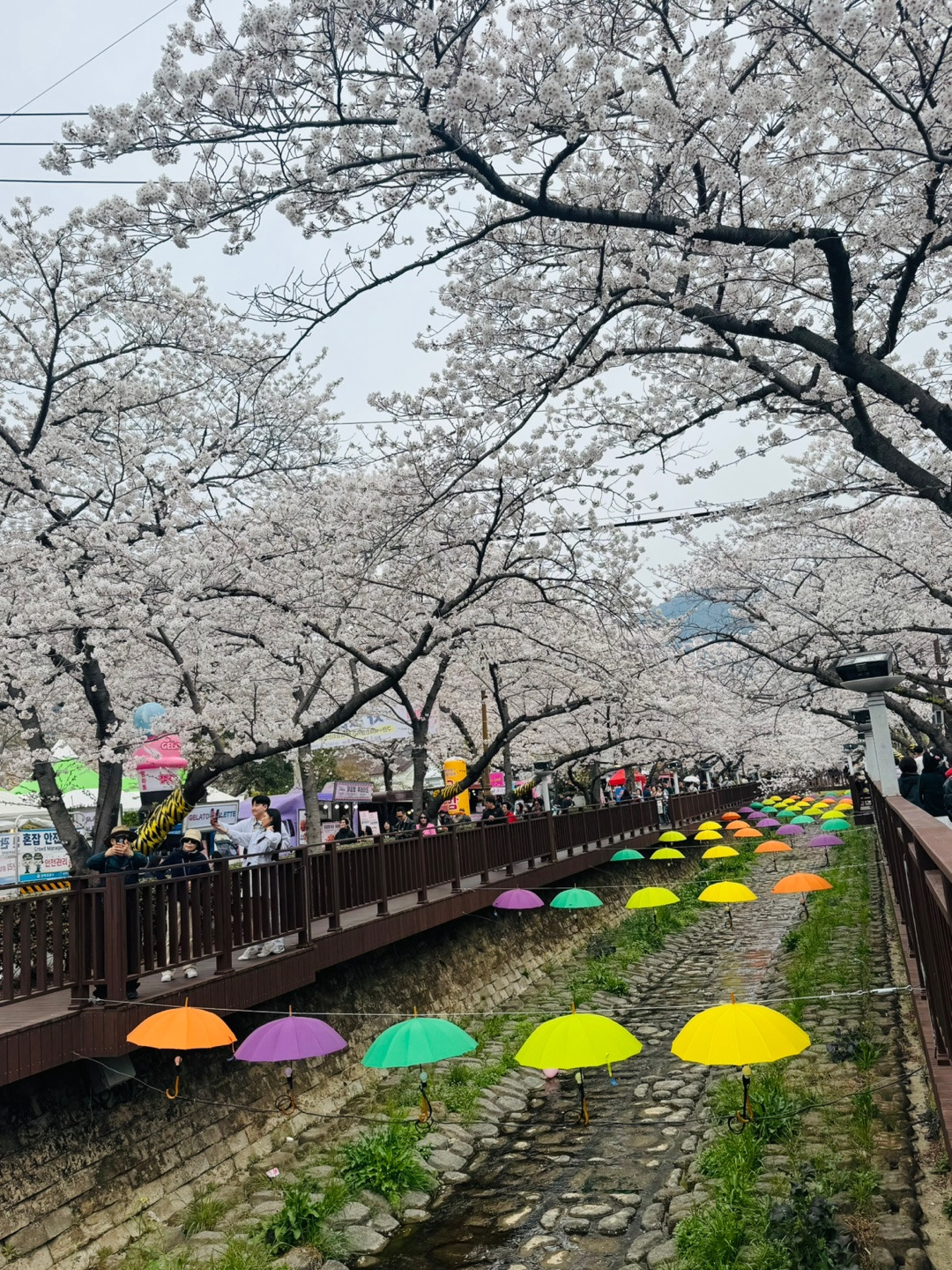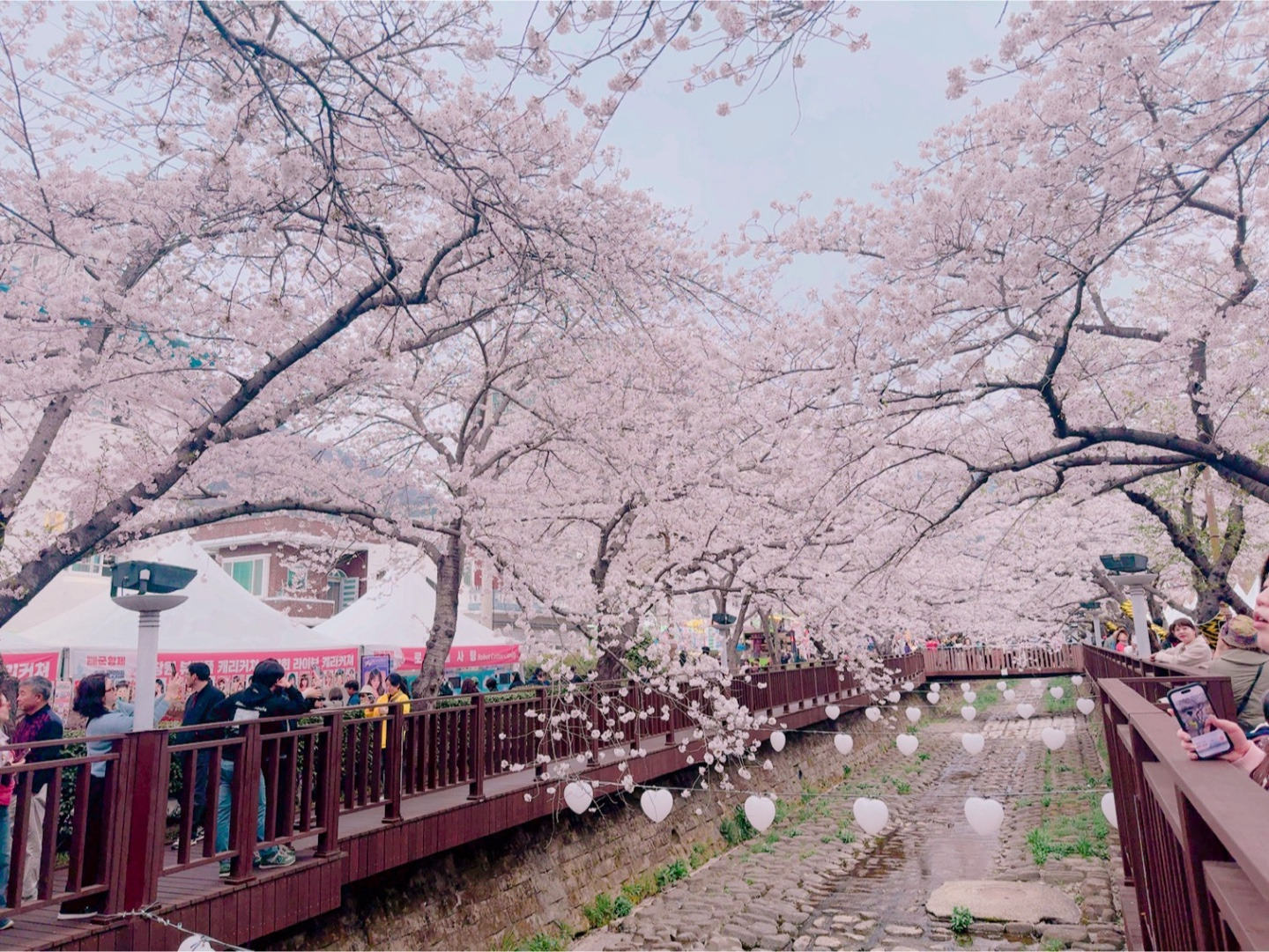 저번주에 이어 이번주도 벚꽃을 즐기기 위해 출발한 진해군항제 일정!!저번주보다 이번주가 더 벚꽃 개화가 많이 되었을 것 같아 기대감을 안고 출발했어요. 차가 별로 막히지 않아 일정 시간보다 조금 일찍 도착했고, 저번주보다 벚꽃 팝콘이 아주 이쁘게 열려 사진 찍기 최고였어요. 경화역에서 벚꽃 경치를 즐기고, 여좌천으로 이동하여 여좌사거리에서 도보로 20정도 걸어서 여좌천 로망스다리에 도착했는데 역시 벚꽃 명소답게 벚꽃이 흐르러지게 펴있어 여좌천 다리를 쭉 걸어갈 때마다 감탄사가 절로 나왔어요. 전국에서 벚꽃하면 아!진해!라고 하는 이유가 있었어요. 여좌동 일해에 펴있는 벚꽃들이 길마다 반겨주고 있어서 꽃의 동산에 온 느낌이였어요.