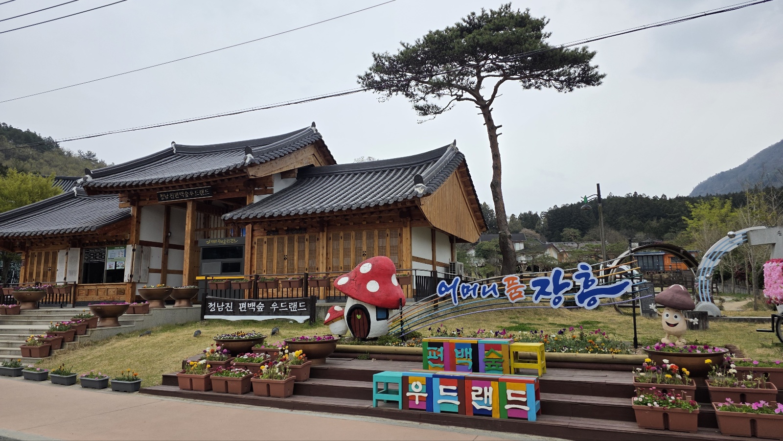 우드랜드 편백나무숲의 맑은 공기를 마시며 힐링을 합니다