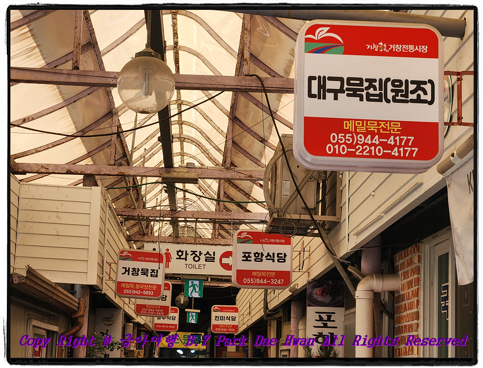떡집, 과일가게, 전집, 반찬가게 등이 있으며 국수, 국밥, 분식등도 저렴하게 판매되고 있습니다. 또한 거창전통시장 서문 안쪽에 청년상인들이 운영하는 "청년몰" 이 있으며 디저트, 한식, 중식, 버거류 등의 음식점과 미용실까지 있어서 젊은 층의 명소로도 자리잡고 있는 곳입니다.    저는 점심식사로 거창전통시장 근처 중화요리집에서 비빔짬뽕에 군만두로 점심을 해결하였습니다. 거창지역이 의외로 비빔짬뽕이 유명합니다.    거창전통시장에서 점심을 맛있게 먹고 버스는 12시31분경에 거창전통시장을 출발하였습니다. 거창전통시장 출발한지 21분만인 12시52분경에 거창 수승대에 도착하였으며 14시20분에 출발한다는 안내를 받고 하차하였습니다.    "거창 수승대" 입니다. 거창 수승대는 "안의삼동" 의 하나인 원학동에 위치한 명승지 입니다. 화강암 암반과 함께 아름다운 숲이 어우러져 예로부터 전궁의 시인 묵객들이 무릉더원으로 여기며 즐겨 찾았던 곳입니다. 신라.백제간 국경지대였던 당시 사신이 떠날 적에 안위를 걱정하며 근심으로 보냈기 때문에 "수송대" 라고 하였습니다. 이후 1543년 퇴계 이황 선생이 이웃 영승마을에 방문하였다가 수송대를 방문하고자 했습니다. 그러나 급한 정무로 떠나면서 그 이름이 아름답지 못하다 여겨 "수승대" 로 바꾸었습니다.  수승대는 거북바위와 돌개구멍, 구연서원 관수루, 요수정, 함양재 등의 건축물이 조화롭게 어우러진 우리나라 전통 명승의 정수를 보여주는 곳입니다. 그리고 수승대는 SBS드라마 "그 겨울 바람이 분다" 촬영지이기도 합니다.   거창 수승대 현수교 입니다. 거창 수승대주차장에서 출렁다리로 가려면 현수교를 건너 요수정을 지나서 출렁다리로 가게 됩니다.    현수교를 건넌이후 요수정까지 걸으면서 찍어본 사진들 입니다. 이 날 날씨가 제법 더웠는데 소나무 숲을 걸으니 상당히 시원했습니다. 소나무 숲길을 걸으면서 멋진 경치를 바라보니 힐링이 되고 기분이 좋았습니다.   멋진 경치 바라보며 걷다보니 어느덧 출렁다리 올라가는 마지막 관문인 계단이 나왔습니다. 거창 우두산 Y자 출렁다리도 계단을 통해 올라가는데 수승대 출렁다리 역시 계단을 통해 올라갔습니다.   "거창 수승대 출렁다리" 입니다. 높이 50m, 길이 240m로 상당히 높은 출렁다리 입니다. 고소공포증이 있으신분들은 출렁다리 건너기 힘듭니다.   출렁다리 건너면서 담아본 수승대관광지와 멋진 경치들 입니다.    출렁다리 건너면서 찍어본 사진들 입니다. 저는 출렁다리에서 멋진 경치바라보면서 커피를 마시기 위해 버스에서 내릴때 캔커피를 하나 들고 내렸다가 출렁다리에서 멋진 경치 바라보면서 마셨습니다 ㅎㅎ 이렇게 커피 마시는 것도 나름 추억이고 바닷가 카페보다 더 낫다고 생각하는 본인입니다.   거창 수승대 거북바위 입니다. 거북바위는 바위가 계곡 중간에 떠 있는 모습이 거북처럼 보인다 해서 붙여진 이름으로써 인고의 세월을 견뎌낸 소나무들이 바위 곳곳에 자리잡고 있어 경이롭습니다. 또한 바위 둘레면에는 수승대의 당초 지명인 "수송대" 를 "수승대" 로 고쳐 부를 것을 권한 퇴계 이황의 시를 비롯하여 옛 풍류가들의 시가 가득 새겨져 있습니다.   거창 수승대에서 약 1시간30분정도 여행을 하고 14시22분경에 버스는 다음목적지인 "덕천서원" 으로 출발하였습니다. 출발하면서 가이드님께서 "덕천서원에 문이 열려있는지 안열려있는지 잘 모르겠는데 일단 가보겠습니다. 혹시나 문이 열려있지 않다면 대체 여행지인 거창박물관" 으로 가겠습니다 하고 안내를 해주셨습니다. 버스는 수승대를 출발하여 출발한지 약 27분만인 14시29분에 덕천서원에 도착하였지만 문이 열려있지 않아 대체 여행지인 거창박물관으로 이동하였습니다. 거창박물관은 14시57분경에 도착하였으며 이 곳에서는 15시30분에 출발한다는 안내를 받고 하차하였습니다.    거창박물관 둘러보면서 찍어본 사진들 입니다. 거창박물관은 거창지역을 중심으로 출토 전래된 자료들이 많습니다. 채색본 대동여지도와 둔마리 벽화고분군, 가야토기 등이 전시되어 있습니다. 거창군은 선사시대부터 살기 좋아 크게 일어날 밝은 곳, 넓은 벌판, 매우 넓은 들이라는 뜻에서 "거열" , "아림" 으로 불려오다가 신라 경덕왕 16년에 "거창" 으로 불리게 되었다고 합니다.    거창박물관을 30분정도 관람하고 마지막 여행지로 "거창 창포원"으로 이동하였습니다. 거창박물관 출발한지 약 10분만인 15시37분경에 도착하였으며 17시까지 집결하라는 안내를 받고 하차하였습니다. 거창 창포원은 축구장 66배 크기의 대규모 수변생태공원으로써 봄에는 100만본 이상의 꽃창포가 군락을 이루고 여름에는 연꽃, 수련, 수국이 피어나고 가을엔 국화와 단풍이 겨울에는 열대식물원과 습지 주변으로 억새와 갈대밭이 펼쳐져 있어서 사계절 내내 색다른 볼거리를 제공하고 있습니다. 거창 창포원은 "경남 제 1호 지방정원" 이기도 합니다.    거창 창포원 열대식물원에서 찍어본 사진들 입니다.    거창 창포원에서 찍어본 "수레국화" 입니다. 충남 당진에 아그로랜드 태신목장이 수레국화 명