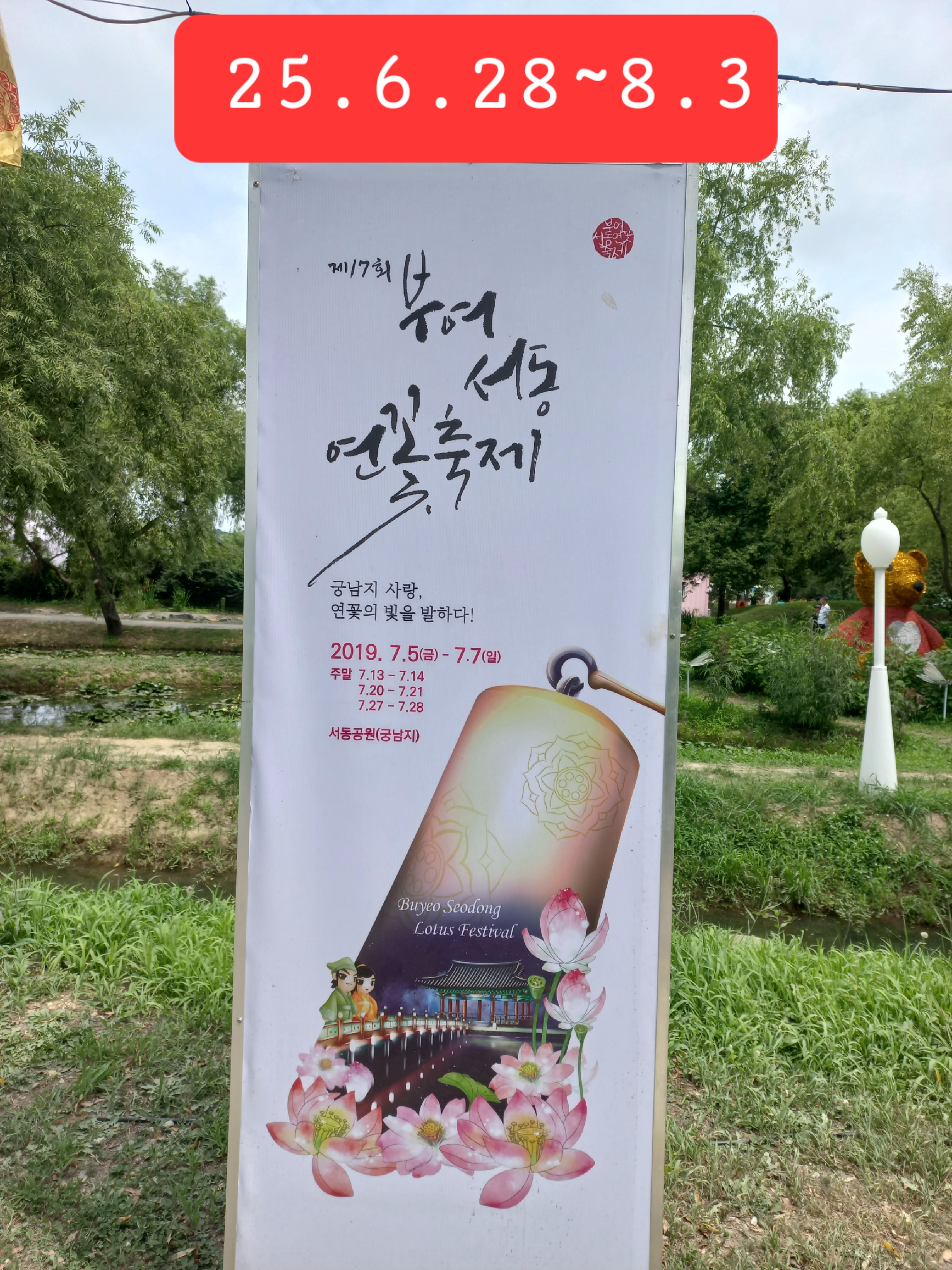 부여 궁남지에 도착했다. 남한 최대의 연꽃단지 답게 너무 넓어서 다 걸어다녀 볼 수가 없다. 수많은 인파가 곳곳에 흩어져서 연꽃 축제를 즐기며 사진을 찍는다. 여름의 여왕, 연꽃이 여기저기 꽃망울을 터뜨리고 피기 시작한 것 같다. 여기 쿵짝 저기 쿵짝, 신나는 노랫가락이 어깨를 들썩이게 한다. 즐기면 된다. 즐겁게 살고 죽을 때 내 발로 화장실 갈 수 있기를 기원하며, 이열치열 신명나게 살자고 다짐한다. 곳곳에 수양버들, 백련, 홍련, 수련 등등 예전에는 이곳이 이리 크지 않았는데 몇십 년 만에 엄청 넓어진 것 같다. 쉼터에 앉아 선들 선들 불어오는 바람에 한없이 앉아 멍때린다. 아! 이 망중한이 너무 좋다. 이 곳은 넉넉한 시간으로 안배되어 여유를 즐길 수가 있다. 때로는 고요히 연을 감상하며 주돈이의 애련설을 연상했다. "물과 뭍 초목의 꽃중에 사랑할 만한 것이 심히 많지만, 진나라 도연명은 홀로 국화를 사랑했고, 이씨 당나라 이후로 세상 사람들은 모란을 심히 사랑했으나, 나는 홀로 연꽃을 사랑하네, 진흙에서 나왔지만 물들지 아니하고, 맑은 물에 씻기어도 요염하지 않네." ~~ 이렇게 시작하고 있으니 연을 노래한 시로써는 역대 최고로 시인묵객들에게 애독되는 글이다. 이 시에서는 연꽃을 군자에 비교한다. 군자처럼 고고하고 맑고 깨끗한 자태를 풍기는 연꽃을 한없이 바라보며, 마음을 정화한다. 은근이 구름이 가리운 궁남지, 내리쬐는 땡볕이 아니니 또한 얼마나 고마운지. 오늘은 거의 2만 보 이상을 걸었지만, 울창한 숲과 백제의 한서린 역사, 궁남지의 연꽃축제가 나로 하여금 보람있는 하루를 느끼게 했다. 애일(愛日)~ 오늘 하루를 아끼며 사랑한 날이다. 굿 굿 굿!