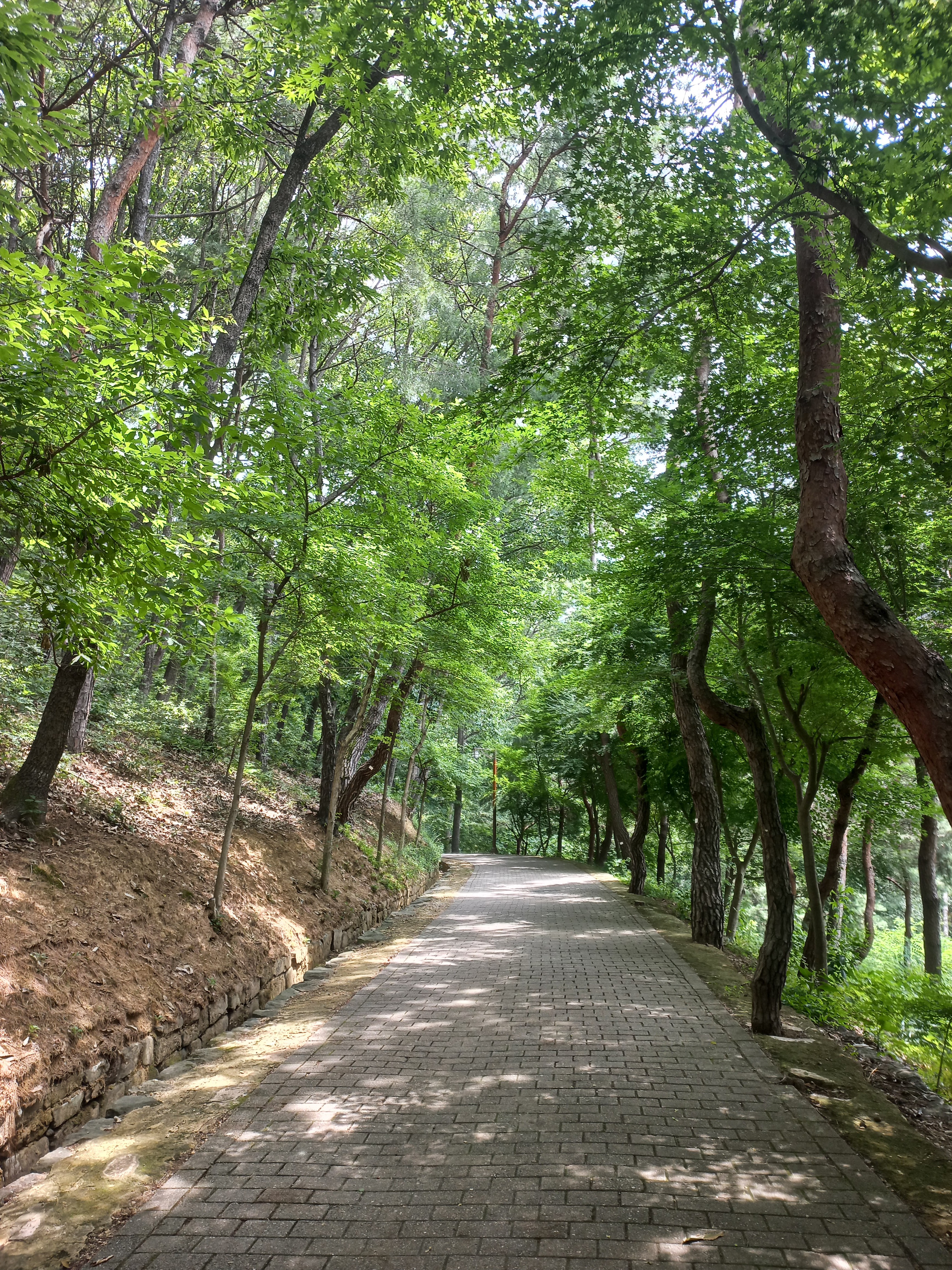 11시30분 부소산성 도착. 숲은 울울창창 우거지고 바람은 산들 산들, 어디에서 불어오는지 반갑고 고맙다. 대구에 있었더라면 무더위에 얼마나 몸부림을 쳤을까? 더워도 움직여야 함을 실감케 한다. 숲은 한여름으로 최고로 우거져 있고, 길은 너무나 잘 포장되어 있다. 걸으며 시원한 물마시고, 땀으로 쌓인 찌꺼기를 배출한다. 부소산성 2.4km 이상을 쉬며 걸으며 극기훈련을 한다. 작은 얼음 가방에 물을 얼려서 가지고 갔더니 하루 종일 시원한 물을 몸에 충전할 수 있었다. 최고다. 한여름에는 시원한 물만한 보약이 없는 것 같다.