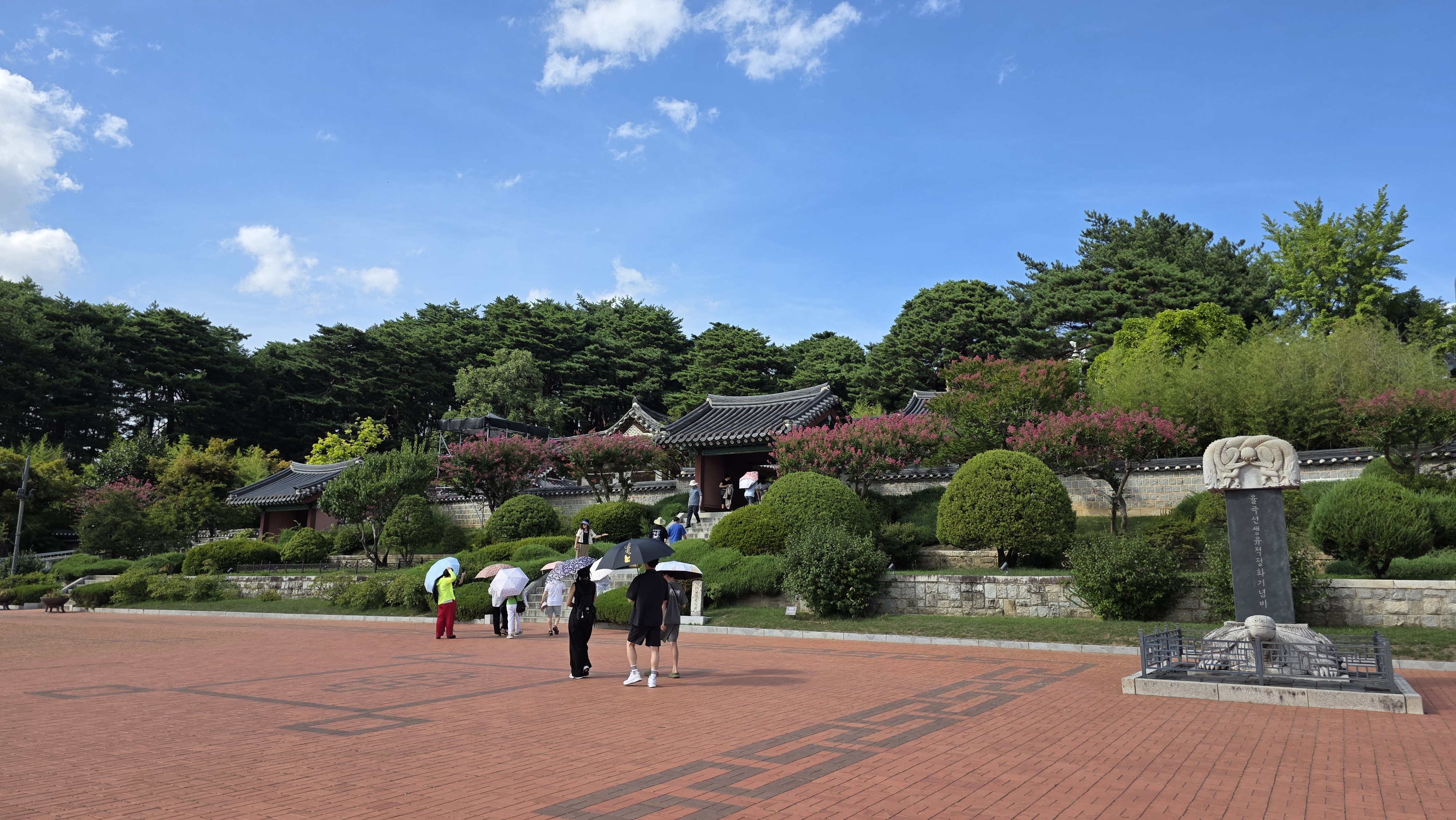 산책하며 양들에게 건초주기 체험도 합니다 오죽헌 경내를 관람하고