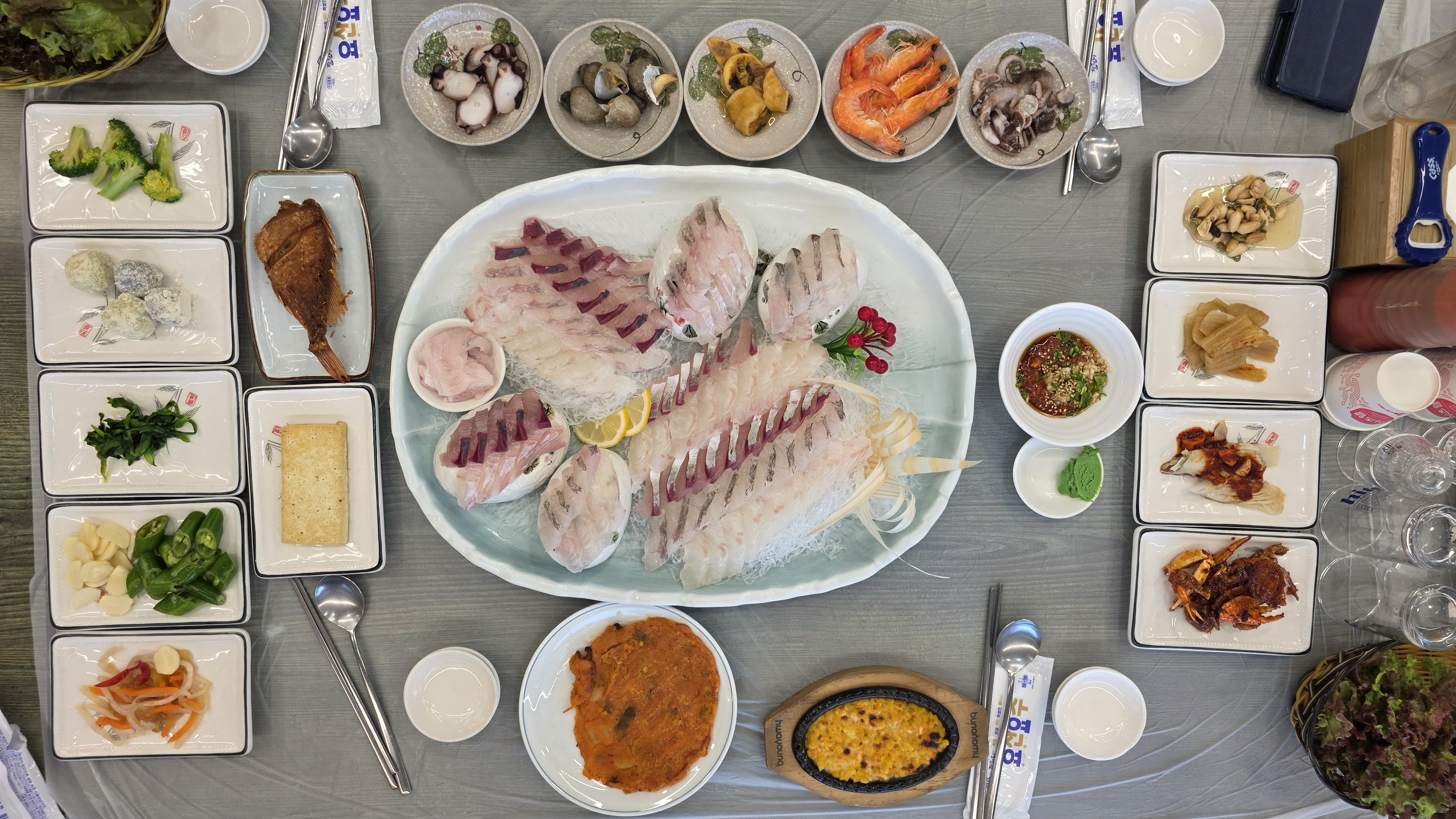 안목해변에서 기념컷도 하고 경포해변을 바라보며 모듬회정식을 먹으며 정겨운 얘기꽃을