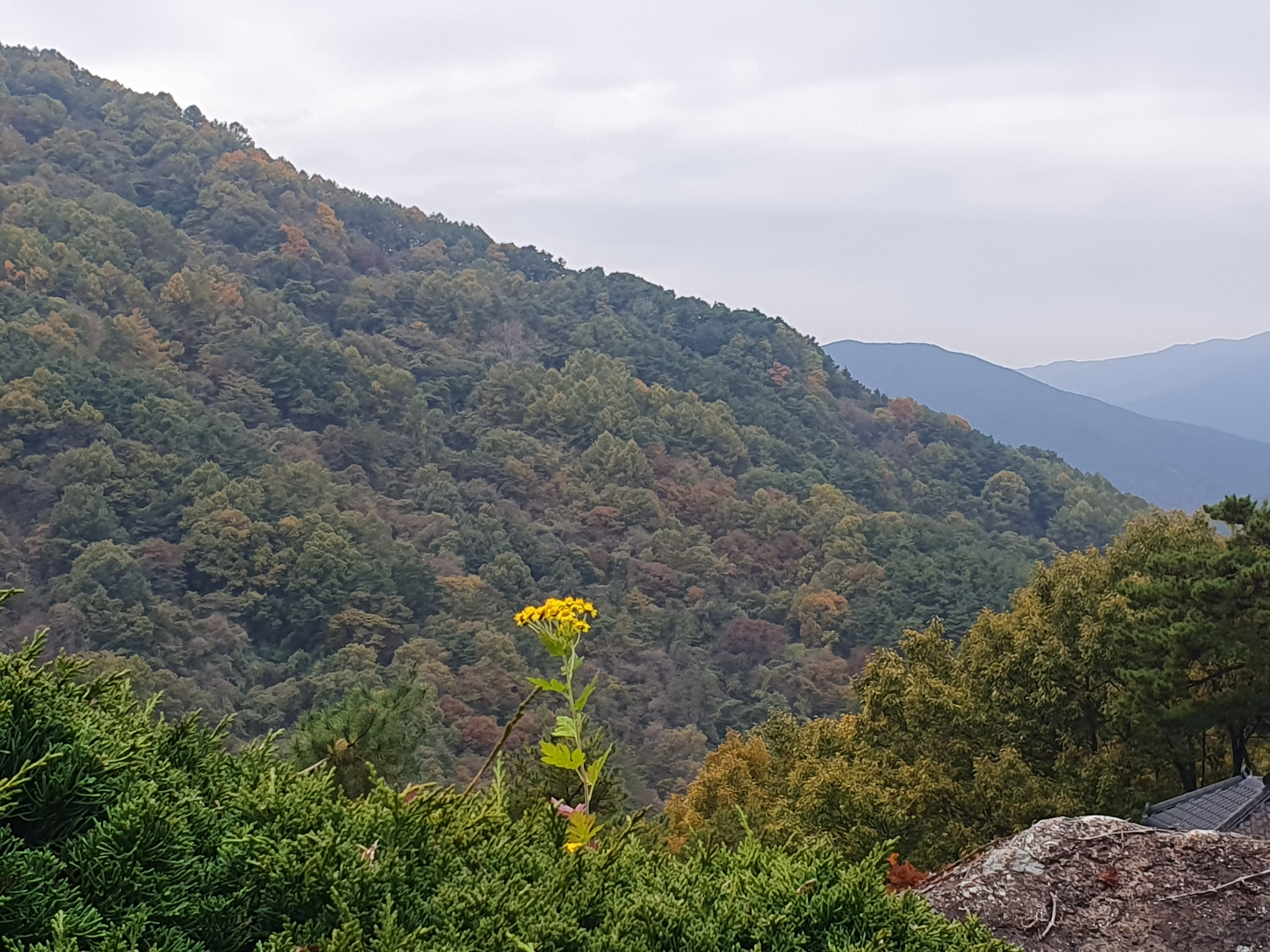 대웅전에서 바라보는 지리산의 풍경은 마치 한 폭의 산수화 같았다.