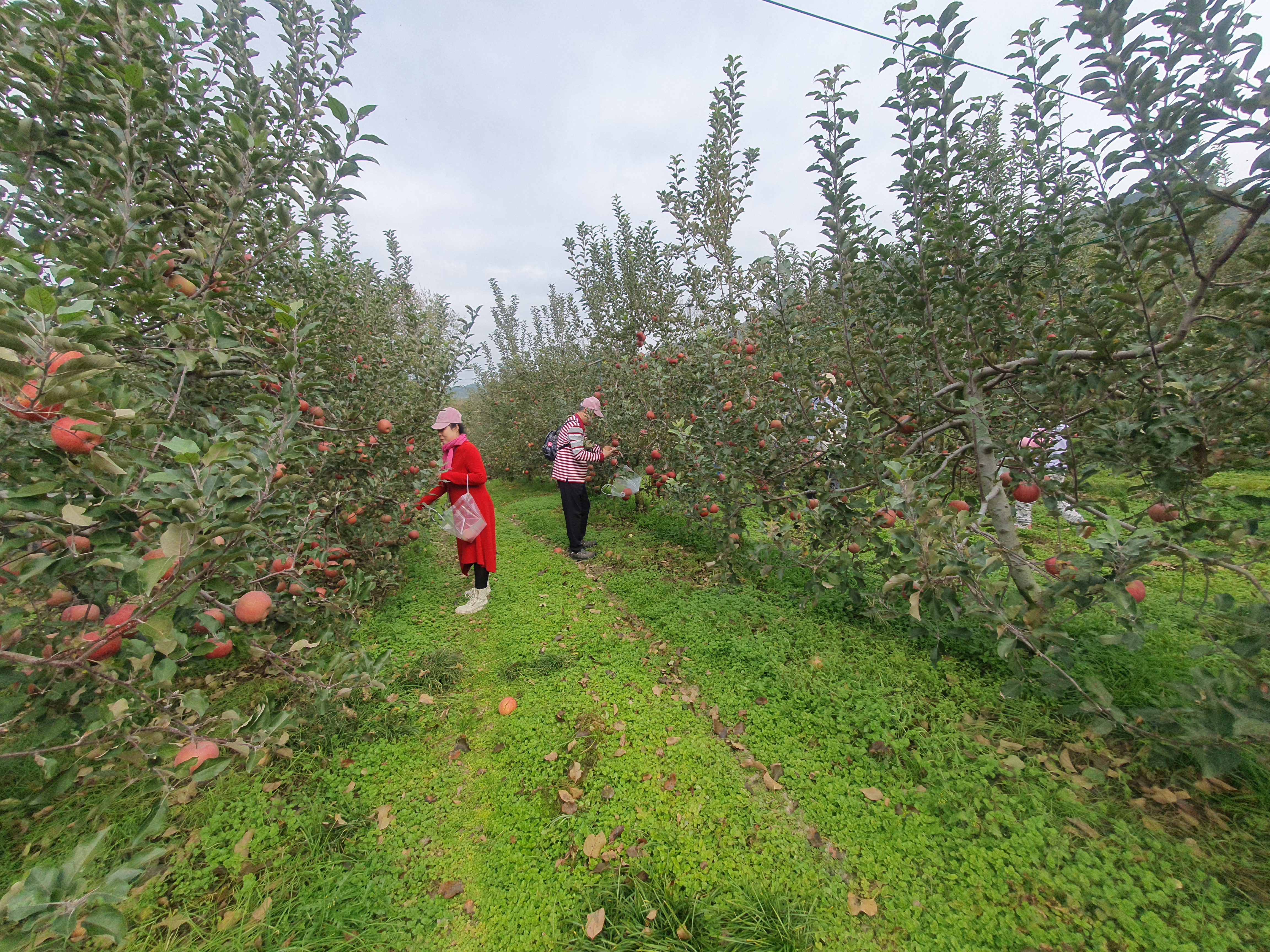 나는 이 곳 저 곳을 둘러보고 사과 4개를 따고 시식으로 주는 사과도 맛 보았다.
