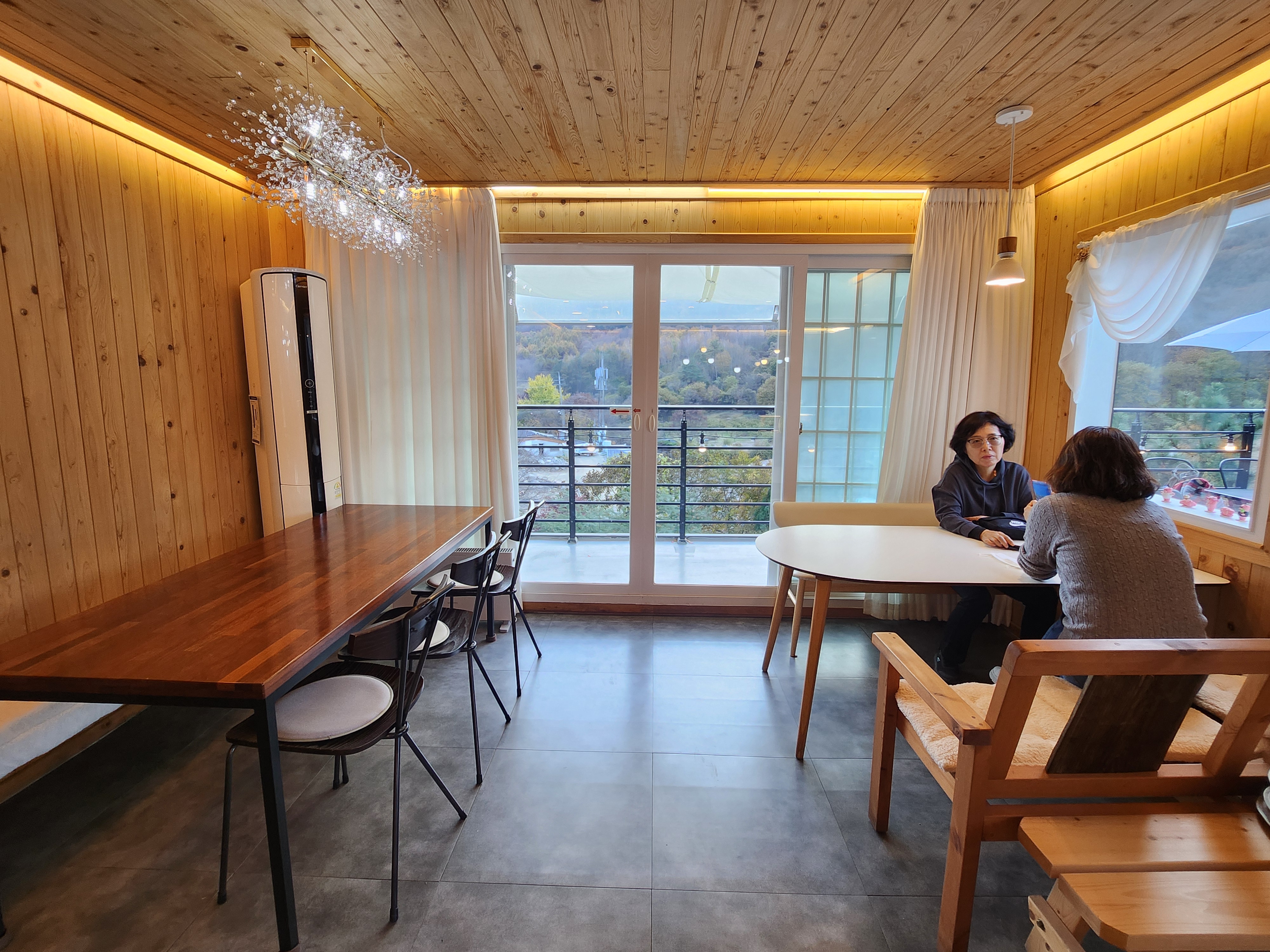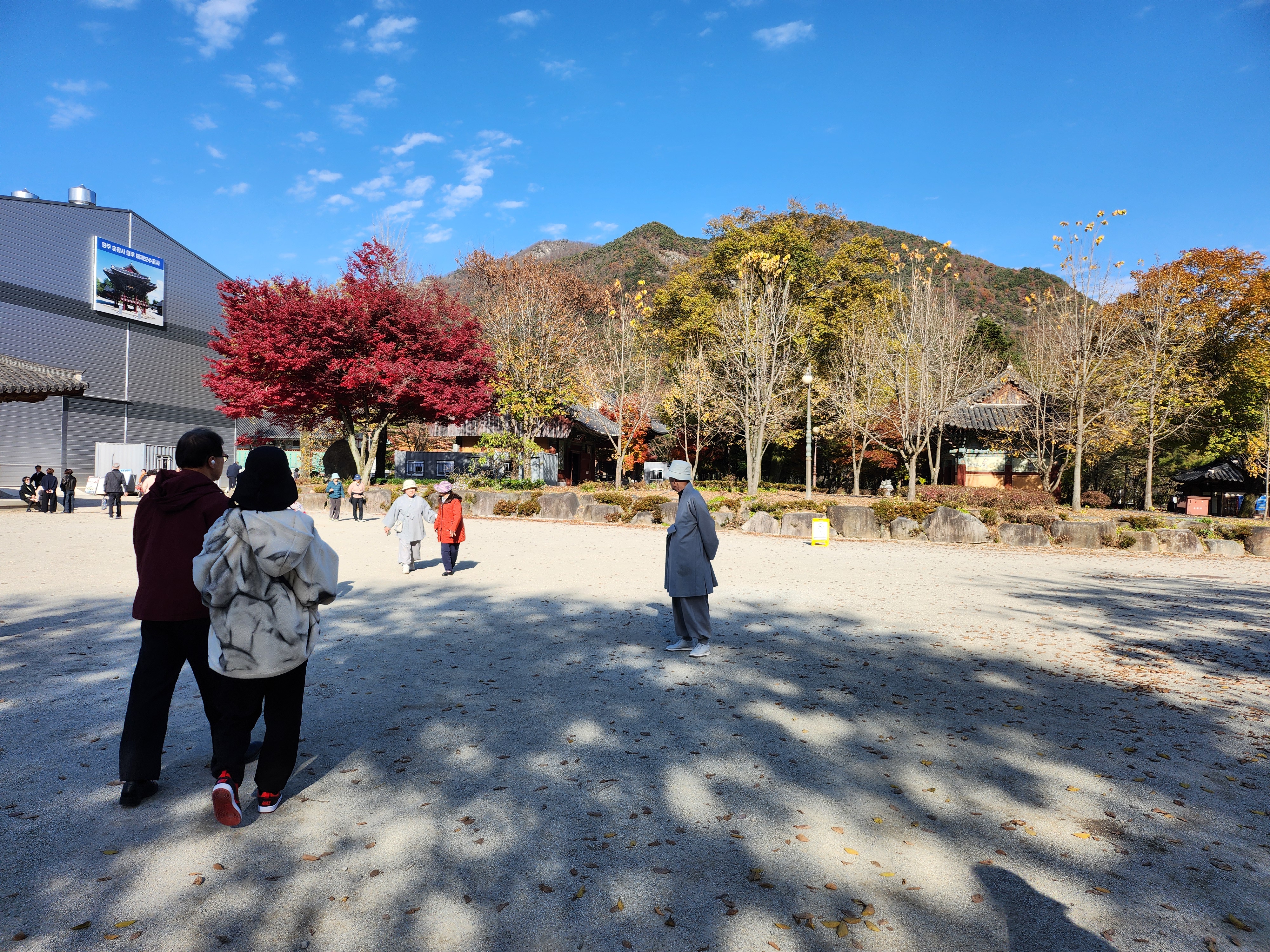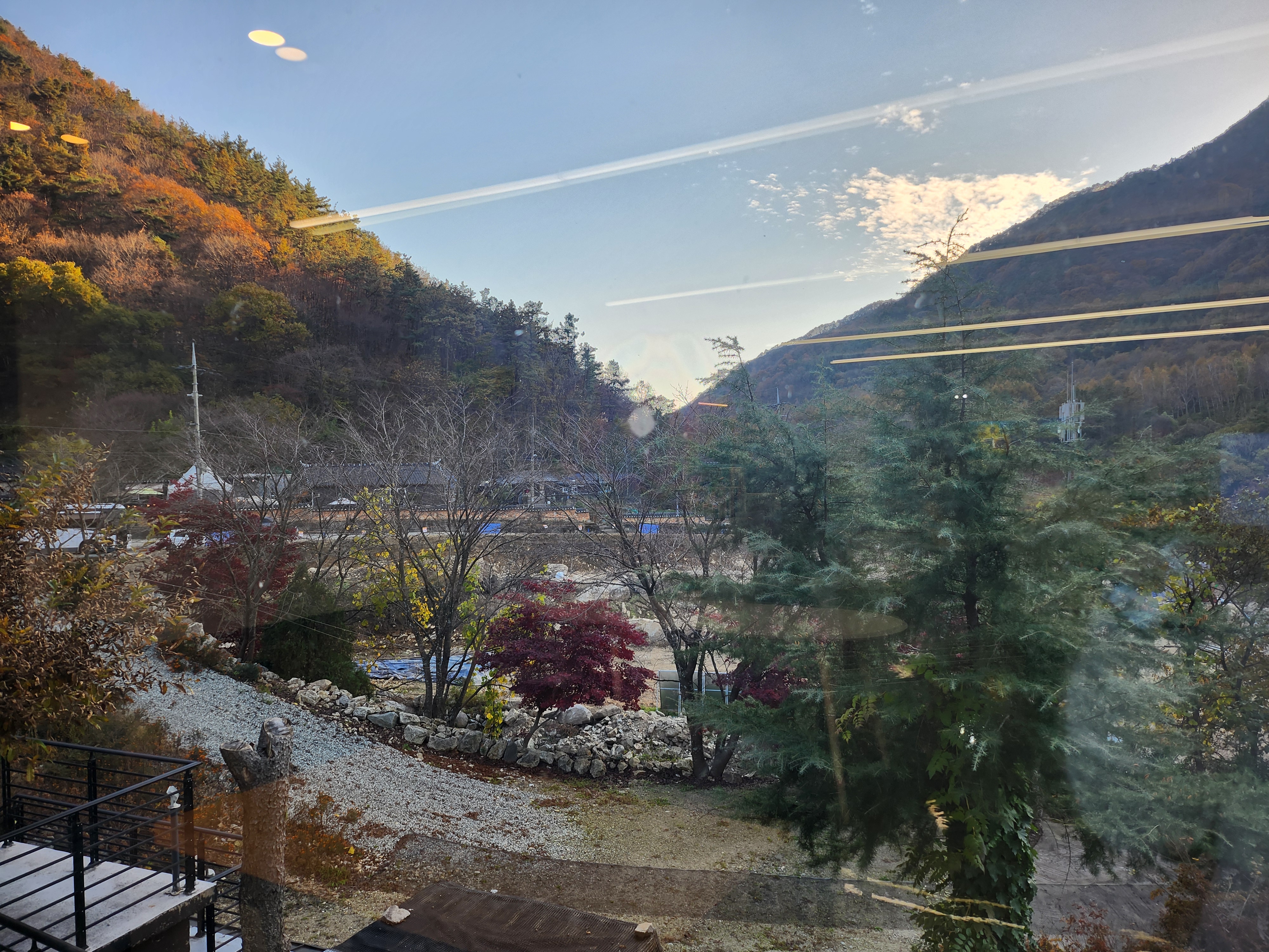창문 밖으론 가을 풍경으로 둘러싸인 한옥들이 보였어요.