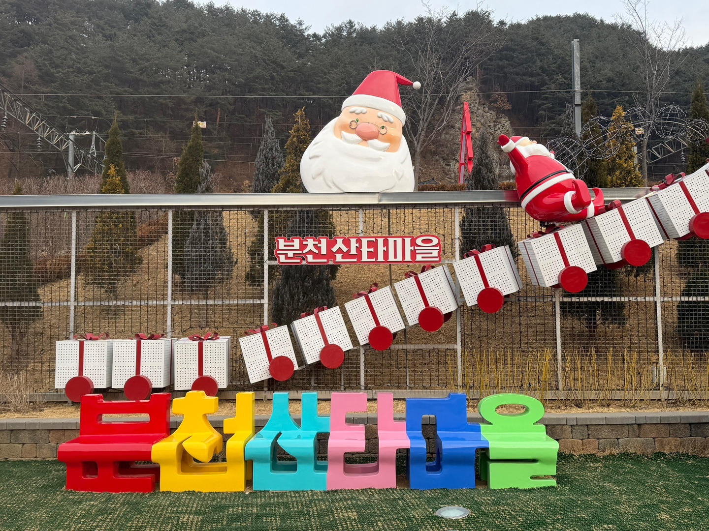 겨울하면 협곡열차 크리스마스하면 분천산타마을~크리스마스주간에 즐기기 딱 좋은 여행코스였어요. 28인승 버스를 타고, 분천 산타마을로 도착을 해서 크리스마스 분위기를 한껏 느낄 수 있는 곳이라 산타관련 조형물들이 곳곳에 배치되어 있어서 연말 기분을 맘껏 즐길 수 있었어요. 분천 산타마을에서 협곡열차를 타고 세상에서 제일 작은 민자역사인 양원역, 하늘도 3평 땅도 3평인 승부역, 예전 탄광촌의 모습을 간직한 철암역끼지 약1시간 가량 협곡열차를 타면서 느린 속도로 천천히 달리는 열차를 여유롭게 즐기며 겨울에 열차를 즐겼어요. 철암역에서 정선시간까지 1시간20분정도 걸리는데 눈이 오지 않아서 조금 아쉬웠어요. 2,7일 장날인 정선시장에서 가는 날이 장날이다라는 말처럼 27일 장날이라 사람이 엄청 많았어요. 여러가지 산지에서 살 수 있는 나무들과 곤드레등 볼거리,먹거리들이 많았어요. 정선에서 국밥을 배불리 먹고 시장을 한바퀴 돌아본 뒤 정선시장에서 10분거리인 병방치스카이워크로 이동해 한반도 지형의 밤섬이 잘 보이는 곳에서 하늘 위를 걸어다니는 느낌인 병방치 스카이워크 높이가 높아서 그런지 밑에 보는게 조금 아찔했지만 그대로 앞에 탁 트인 전망을 보니 속이 뻥 뚫리는거 같았어요. 강원도까지 가서 눈이 없어서 아쉬웠지만 그래도 마지막 크리스마스를 즐길 수 있는 여행이라 만족했습니다.