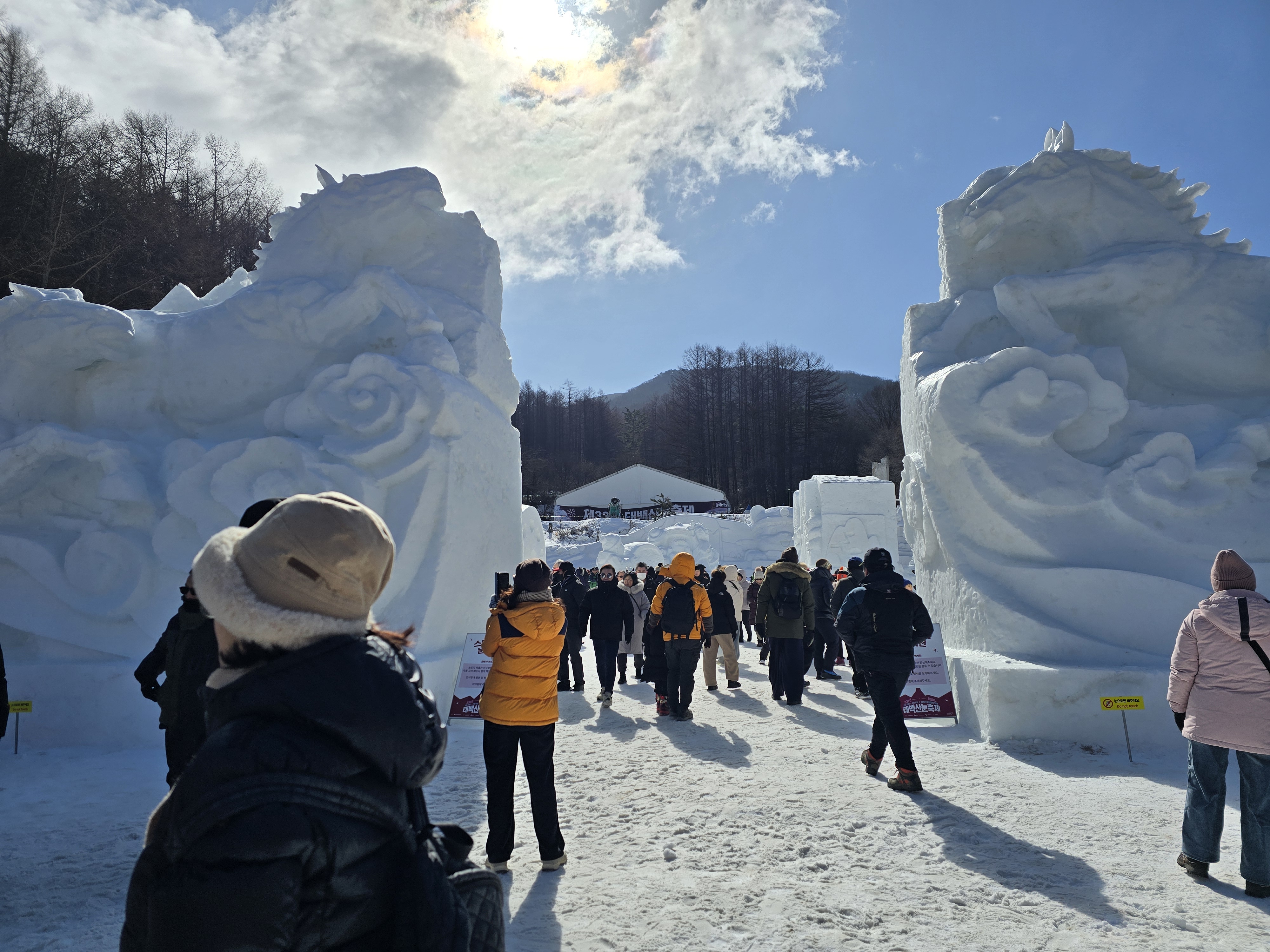 안녕하세요. 김영은 가이드입니다. 매년 겨울마다 가는 협곡열차+태백산눈축제 당일을 다녀왔습니다. 겨울여행의 명소인 분천역 산타마을에 내려서, 협곡열차를 탔습니다. 추쿵추쿵 소리에 기차여행만의 낭만을 다시 느끼고, 태백에 도착했습니다. 태백산눈축제의 대형조각상의 입구는 '붉은 말의 해'인만큼 힘찬 말의 도약하는 모습을 볼 수 있었구요. 대구에서 눈을 밟을 만한 일이 적은데(올해는 딱 1번!) , 눈축제장에서는 많이 밟아볼 수 있어서 좋았습니다. 정암사의 수마노탑도 올라가보고, 황지연못도 보고 왔습니다. 내년에도 뵙겠습니다!