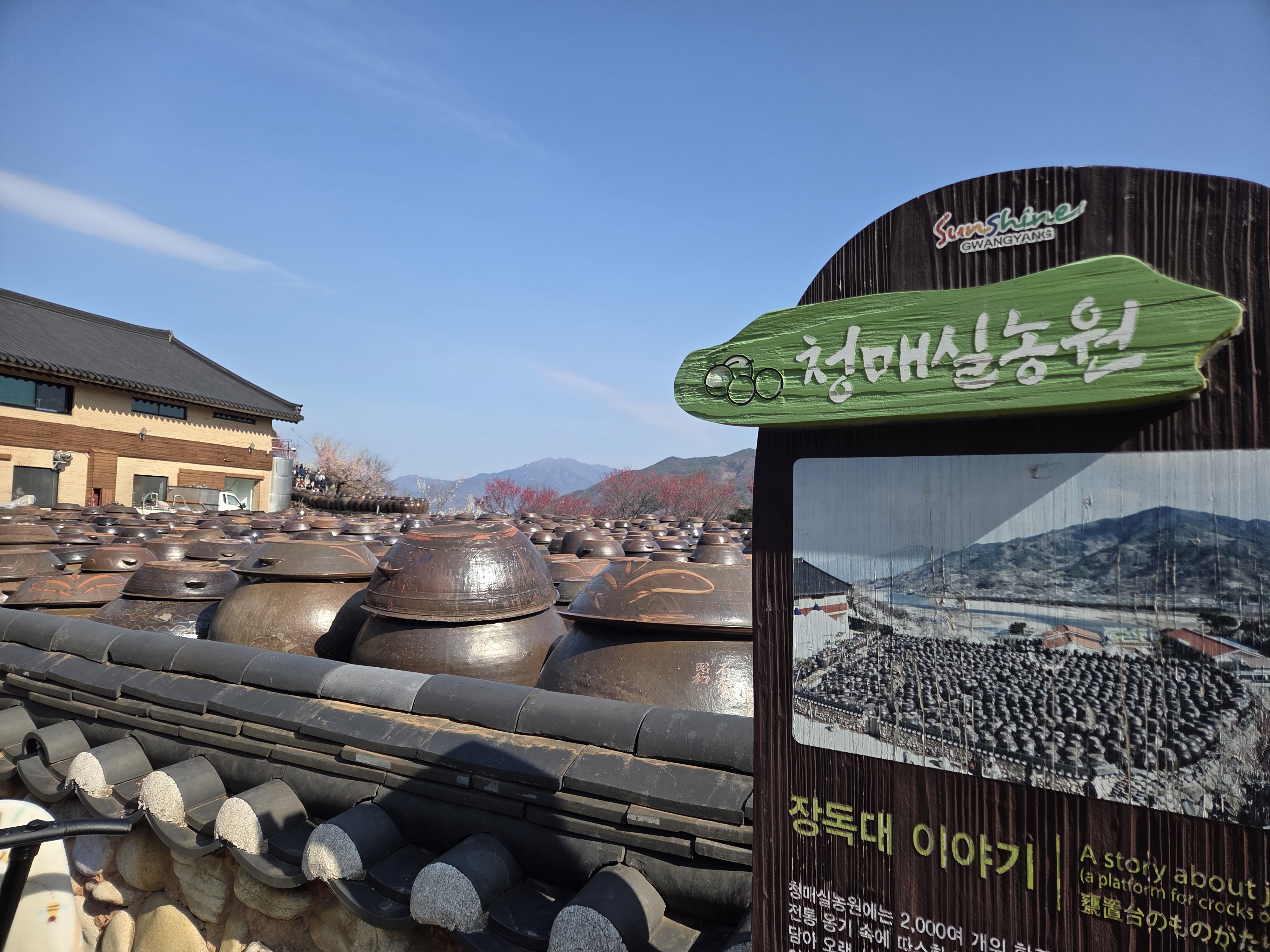 매실 장독대인지~ 어마어마하게 많은 장독대가 쫙~펼쳐져서 멋있었어요~ 산배경에 장독대가 쭉~고풍스럽고 멋있는 풍경이라 이또한 포토스퐛!