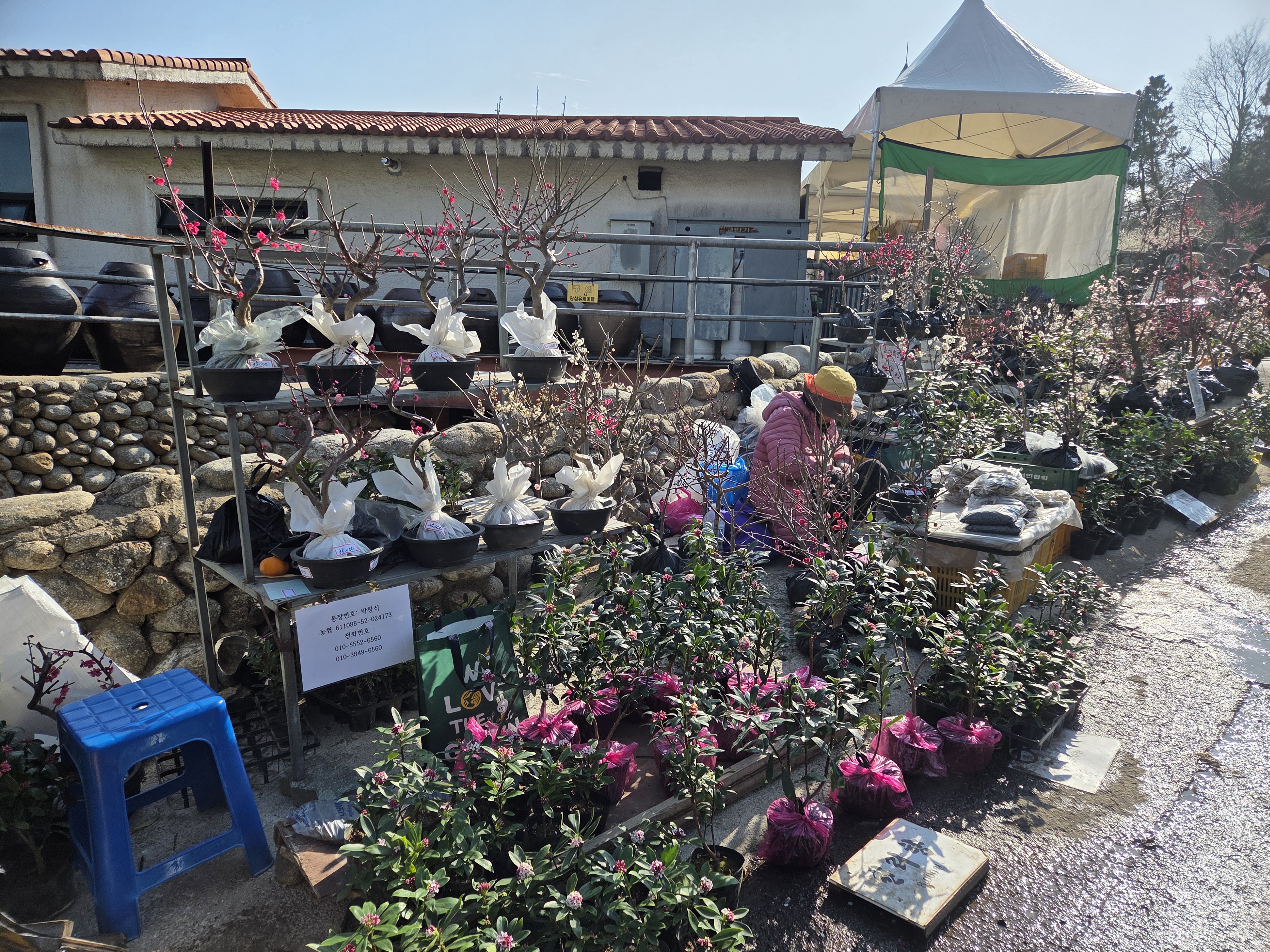 매화마을 올라가는 길가에 천일향 매화묘목도 팔고 여러가지 매실관련 식품들 , 풍물패, 시끌시끌한 분위기 ~ 시장온거 같았어요