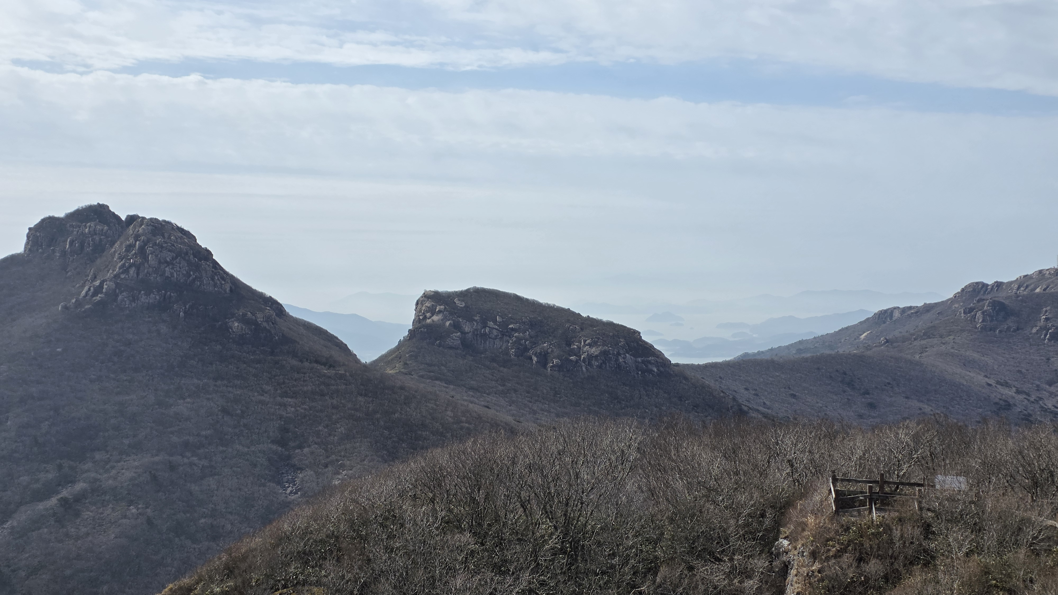 케이블카를 타고 전망대에 올라 멋진 경관에 감탄하면서 한라산도 보는 행운도 누리고 고계봉 표지석에서 기념컷도 합니다