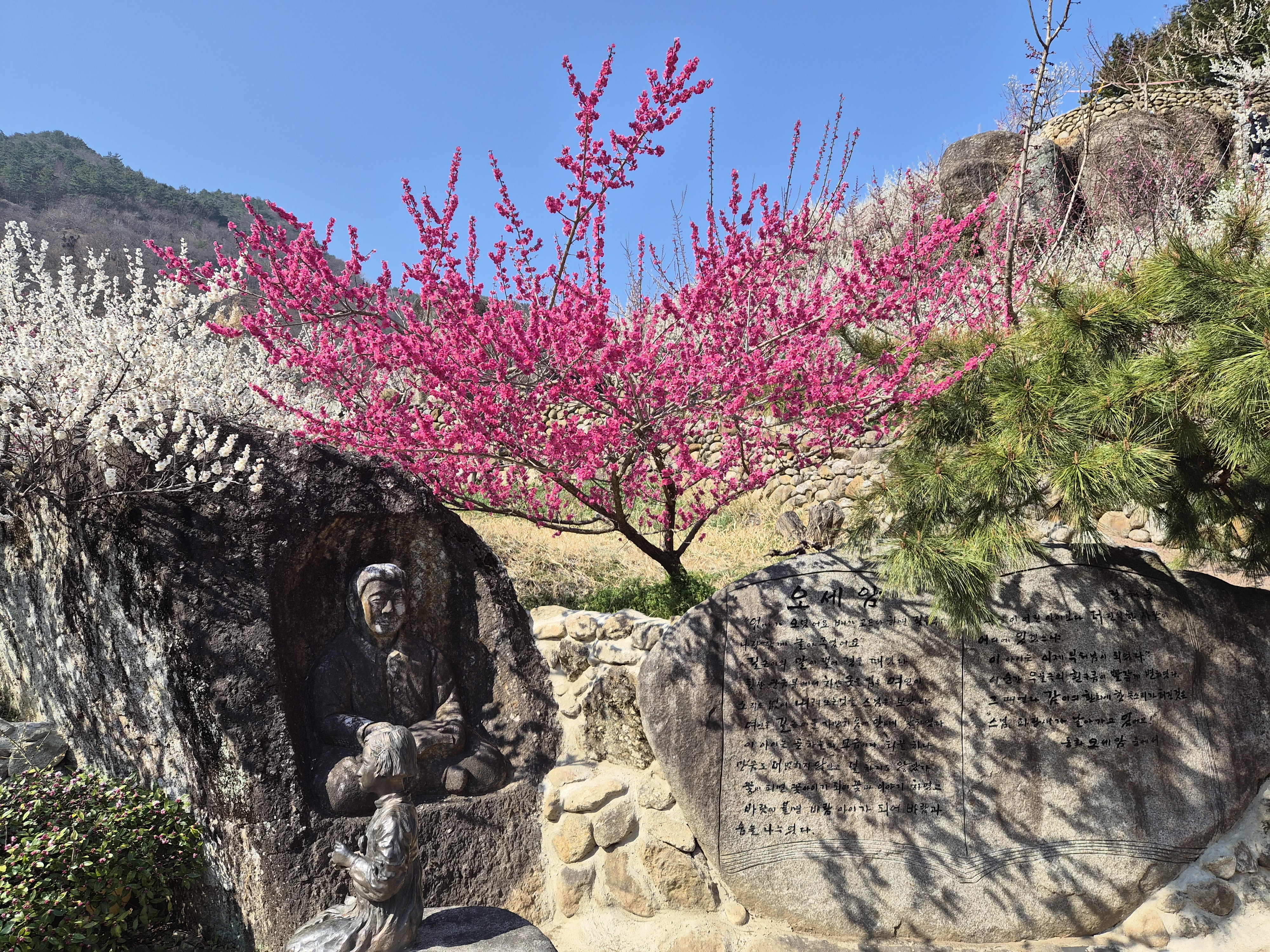 처음으로 떠나는 광양 매화 마을 축제 잔뜩 기대 하고 평소 같으면 일어나지도 못하는 새벽 5시에 기상하여 준비하고 출발 go go~ 버스 탑승지에 도착하여 버스를 기다리는데 드림관광 버스 3대가 왔으나 왠걸 우리가 타야 하는 버스번호만 보이지 않는다...조금 늦나 보다 했는데 가이드 전화가 왔다....전날 오후에 차량변경 문자를 보냈었다고.... 난 오전에 문자 2개만 확인하고 오후에 온 문자는 똑같은 문자라 생각하고 그냥 넘겼는데 그 문자가 차량변경 문자였다니...다음에는 똑같은 문자라도 한번 더 확인 하는 습관을 가져야 겠다.. 나는 백매화, 홍매화, 산수유 하얗고 노랗고 분홍분홍한 꽂들을 모두 보고 싶었지만 오늘은 하루 종일 매화 향기에 취해 보기로 한다.. 2시간 30분 정도 이동 후 사천 휴게소에 20분 휴식 타임을 가진다....간단히 옥수수랑 핫바 하나 먹고 다시 버스 탑승~ 드디어 오매불망 기다리던 광양 매화 마을 도착...어라 왠걸 아직 날씨가 차다.. 봄 꽃 구경이라 바람막이 입고 왔는데...그래도 다행히 걷다보니 기 온도 오르고 날씨도 화창해지고...봄 꽃 구경에 완전 딱인 날씨가 되버린걸~ 오전 9시 이른 시간이라 생각 했는데 벌써 꽤 많은 사람들이 붐비고 있 었다.. 매화 마을 축제 기간에는 입장료를 발급해야 하나 같은 금액 지역 상품권으로 대체 해준다...지역 활성화를 위해서인 듯....우리는 매실 아이스 크림이랑 매실 막걸리로 받아왔다.. 가이드님이 추천해준 매실 아이스크림 새콤달콤 너무 맛있었네요.. 막걸리는 아직 보관중..ㅎㅎㅎㅎ 포토존에는 벌써 많은 사람들이 대기를 하고 있었다.. 전망대에서 바로본 매화 마을은 전체가 너무 아름답고 황홀했다...하루종일 꽃길을 거닐어도 시간 가는줄 모를 듯 했다.. 매화향에 취하고 싶었으나 생각만큼 코 끝을 자극 하지는 않았다.. 매화꽃 천국이라는 광양매화, 꽃길따라 물길따라 섬진강 매화여행!!!! 새하얀 눈꽃이 가득한 섬진강변 매화마을을 뒤로 하고 순천 낙안읍성으로 달렸 다