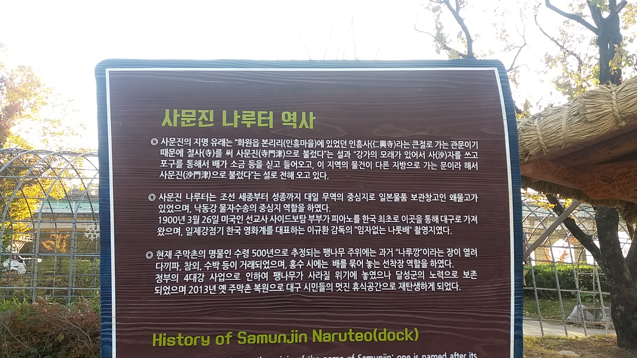 다음으로 간 곳은 사문진 주막촌과 화원유원지이다.