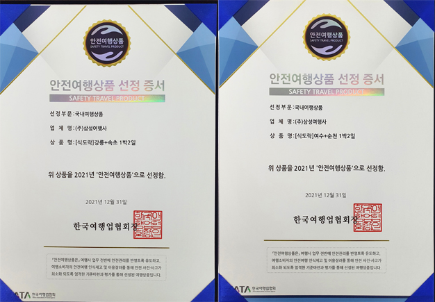 2년연속 2021~2022년 안전여행상품(4개상품) 선정!