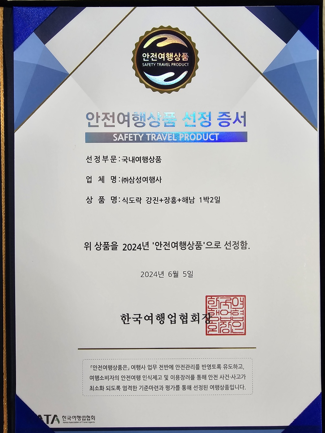 '2024 안전여행상품'으로 1개 상품이 선정되었습니다.