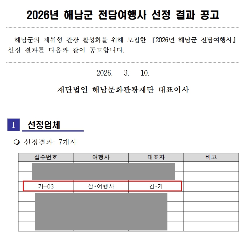 ' 2026 해남 전담여행사 '로 선정되었습니다.